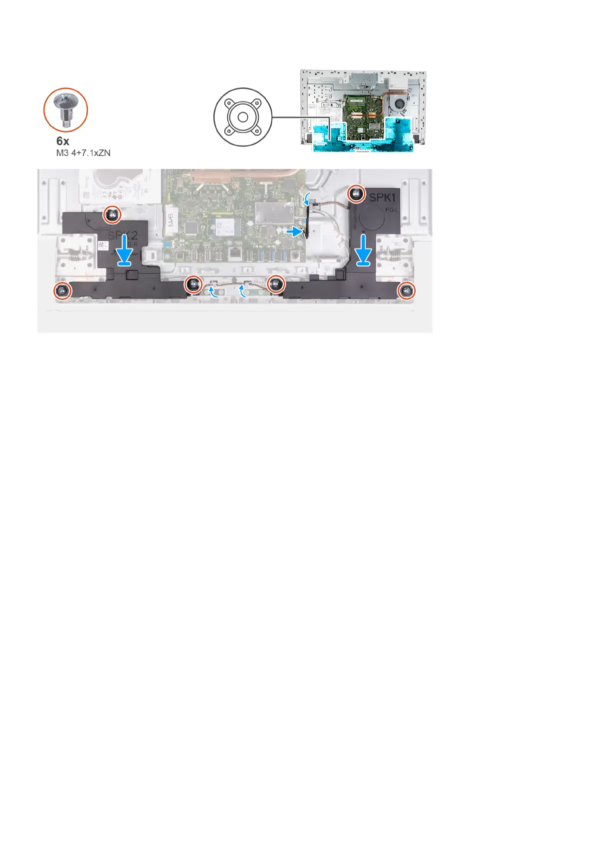 2. Replace the eight screws (M3 4+7.1xZN) that secure the speakers to the display-assembly base.