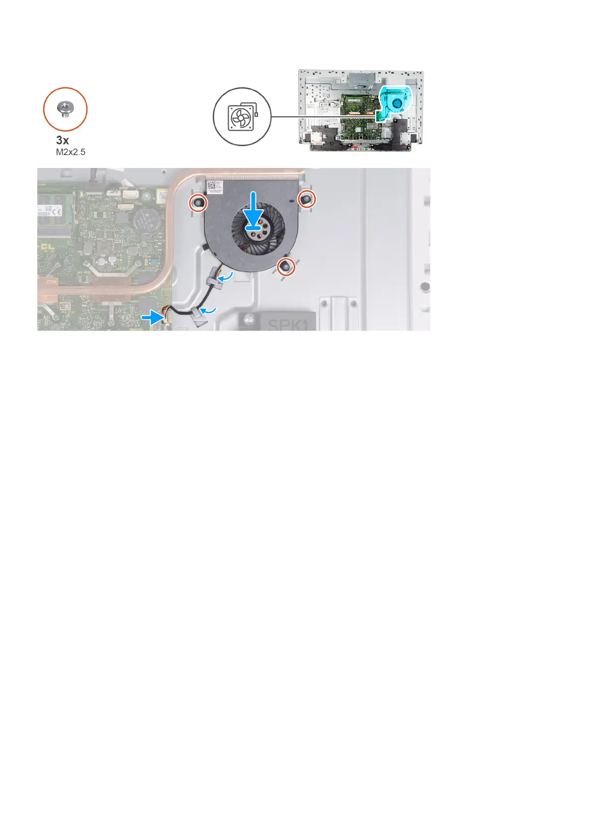2. Replace the three screws (M2x2.5) that secure the fan to the display-assembly base.