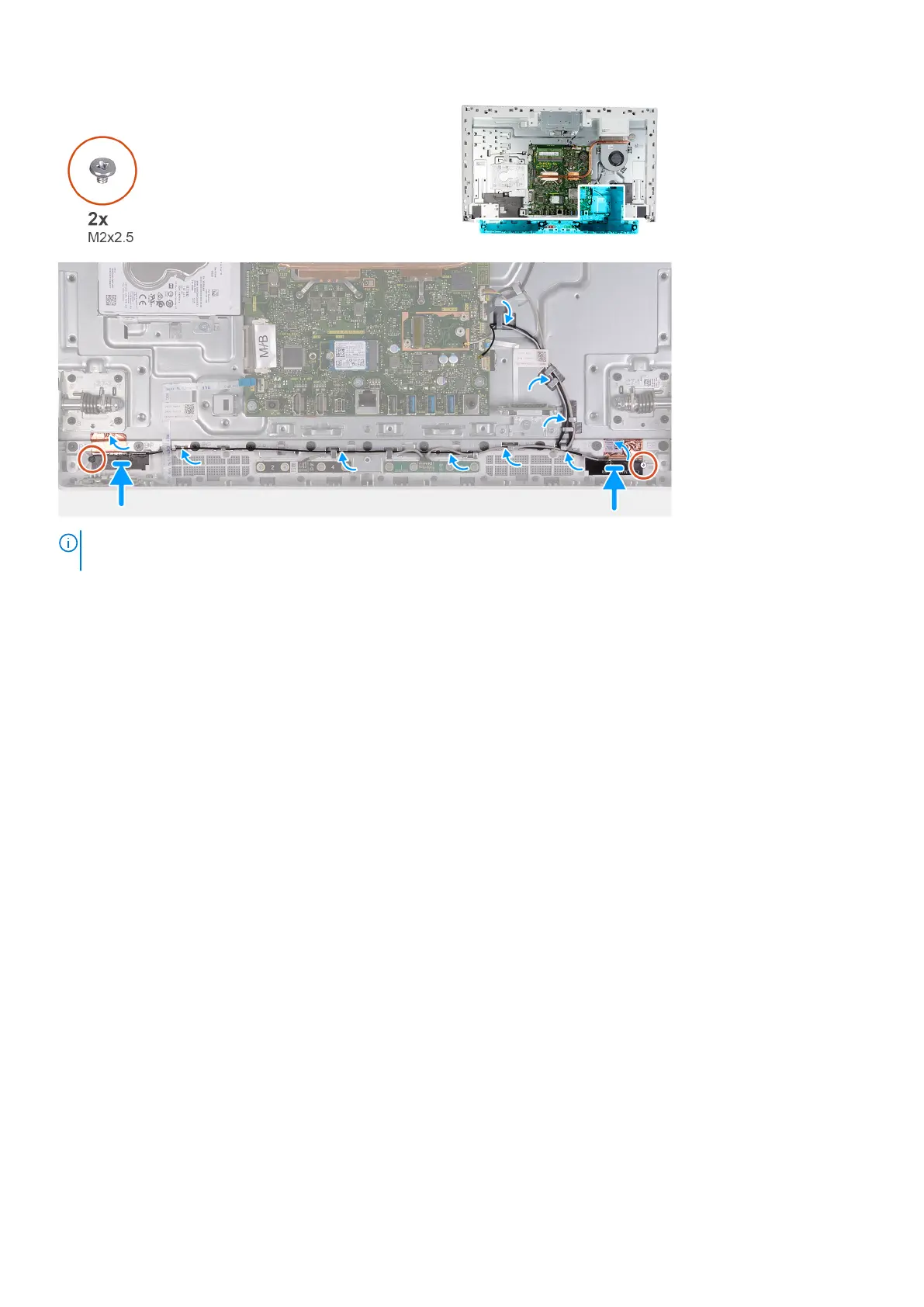 3. Replace the two screws (M2x2.5) that secure the antenna modules (2) to the base panel.