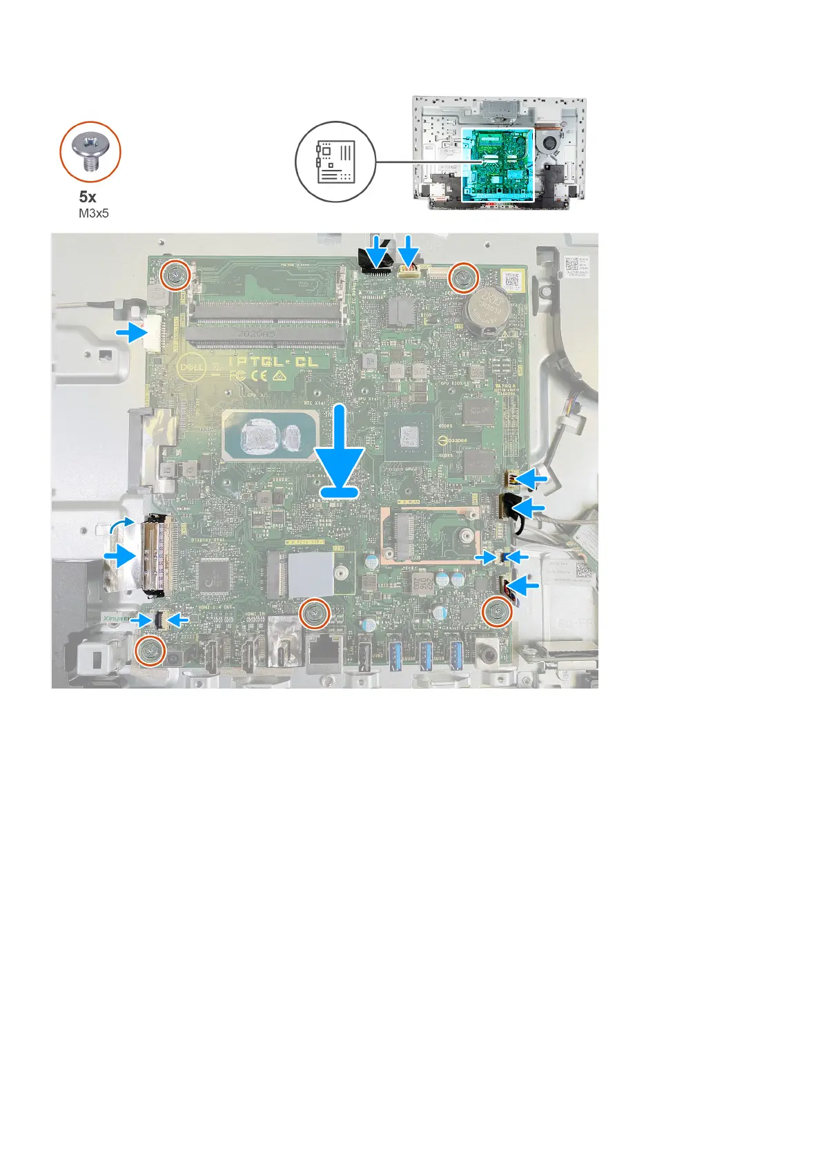 2. Replace the five screws (M3x5) that secure the system board to the display-assembly base.