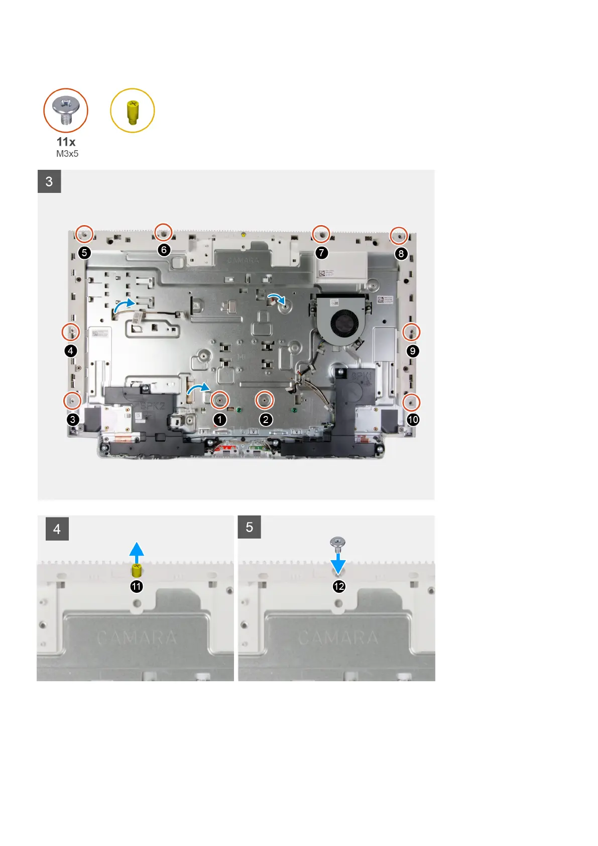 4. Replace the 10 screws (M3x5) that secure the display panel to the display-assembly base.