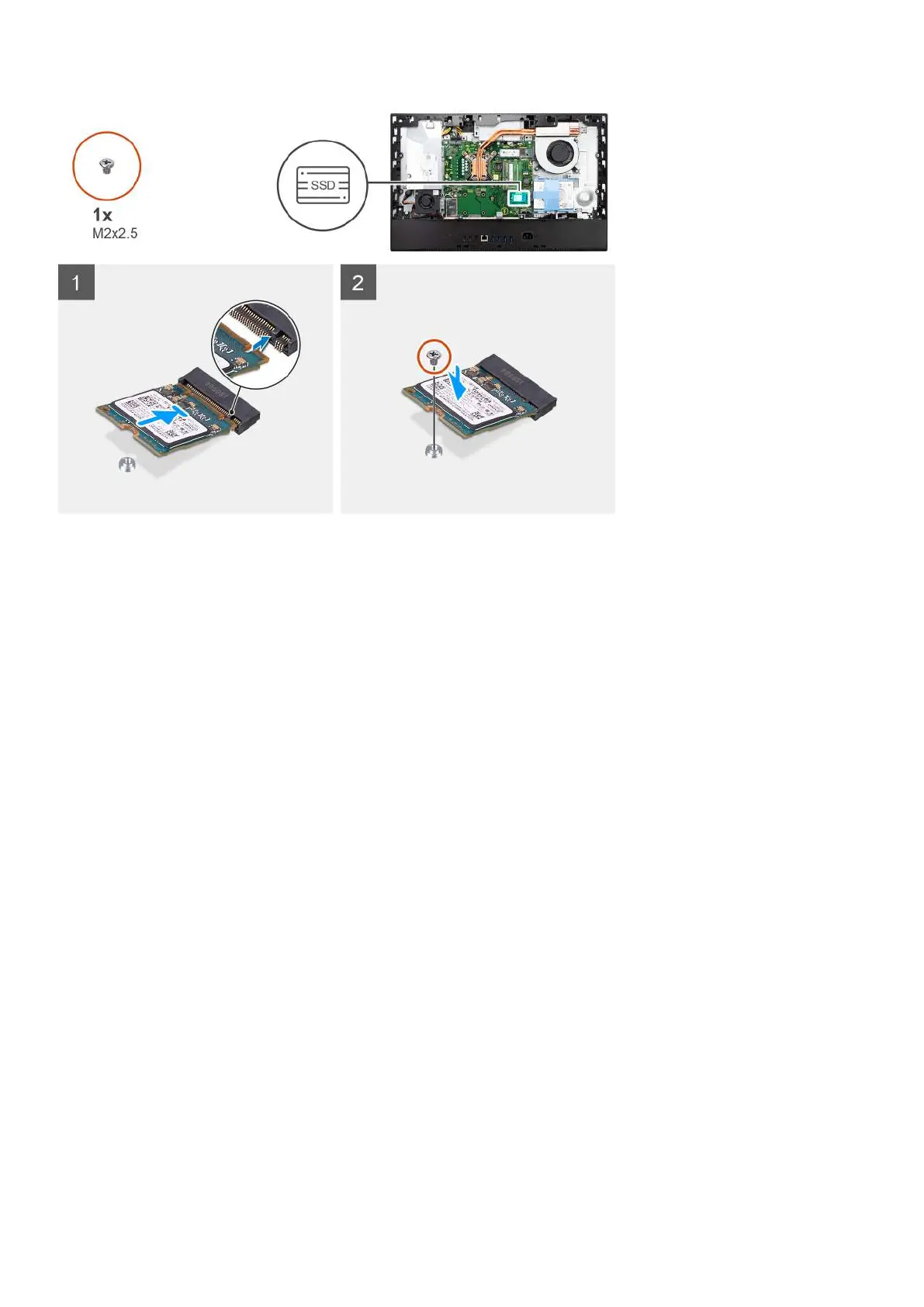 3. Replace the screw (M2x2.5) to secure the solid-state drive to the system board.