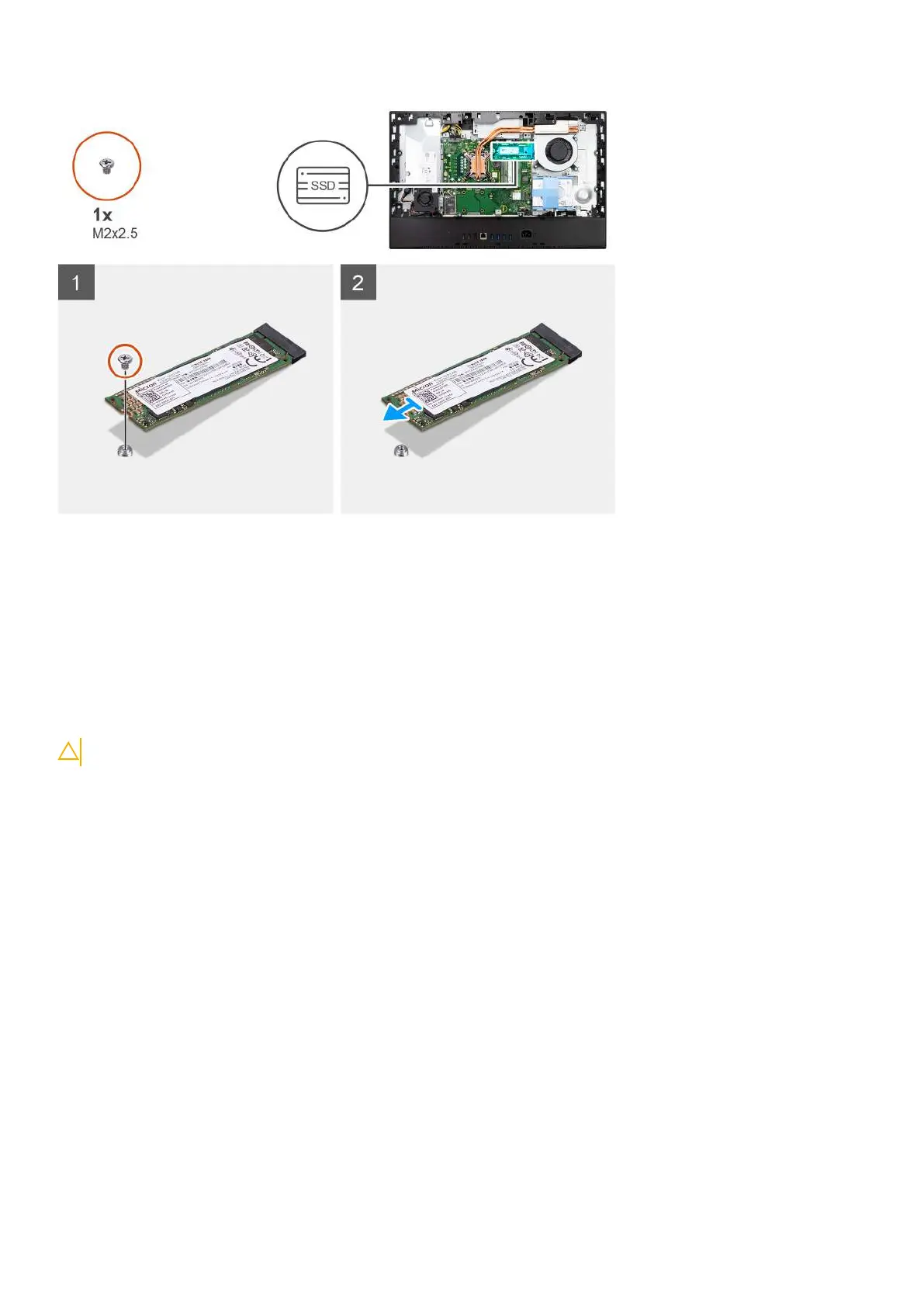 1. Remove the screw (M2x2.5) that secures the solid-state drive to the system board.