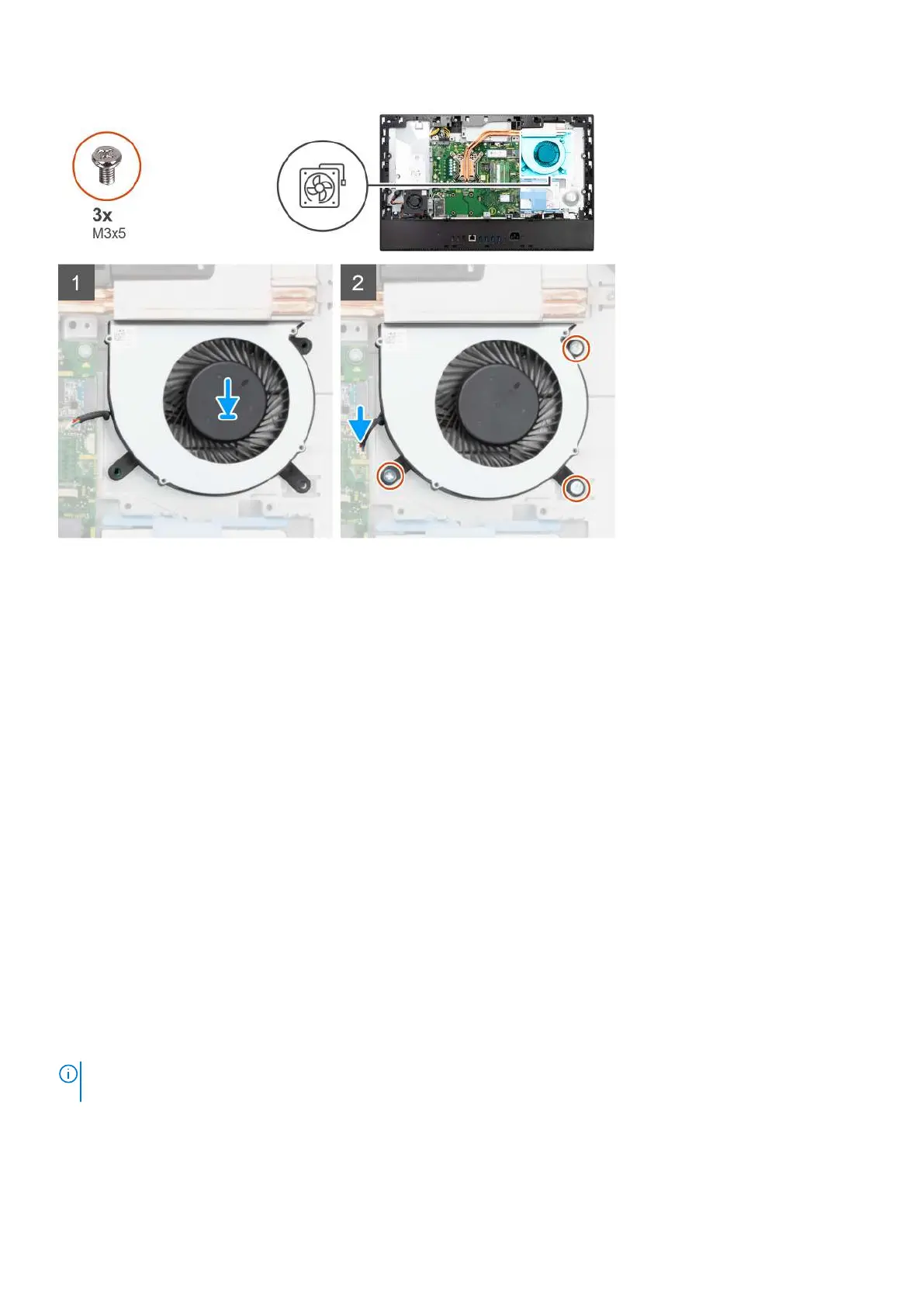 2. Replace the three screws (M3x5) to secure the system fan to the display-assembly base.