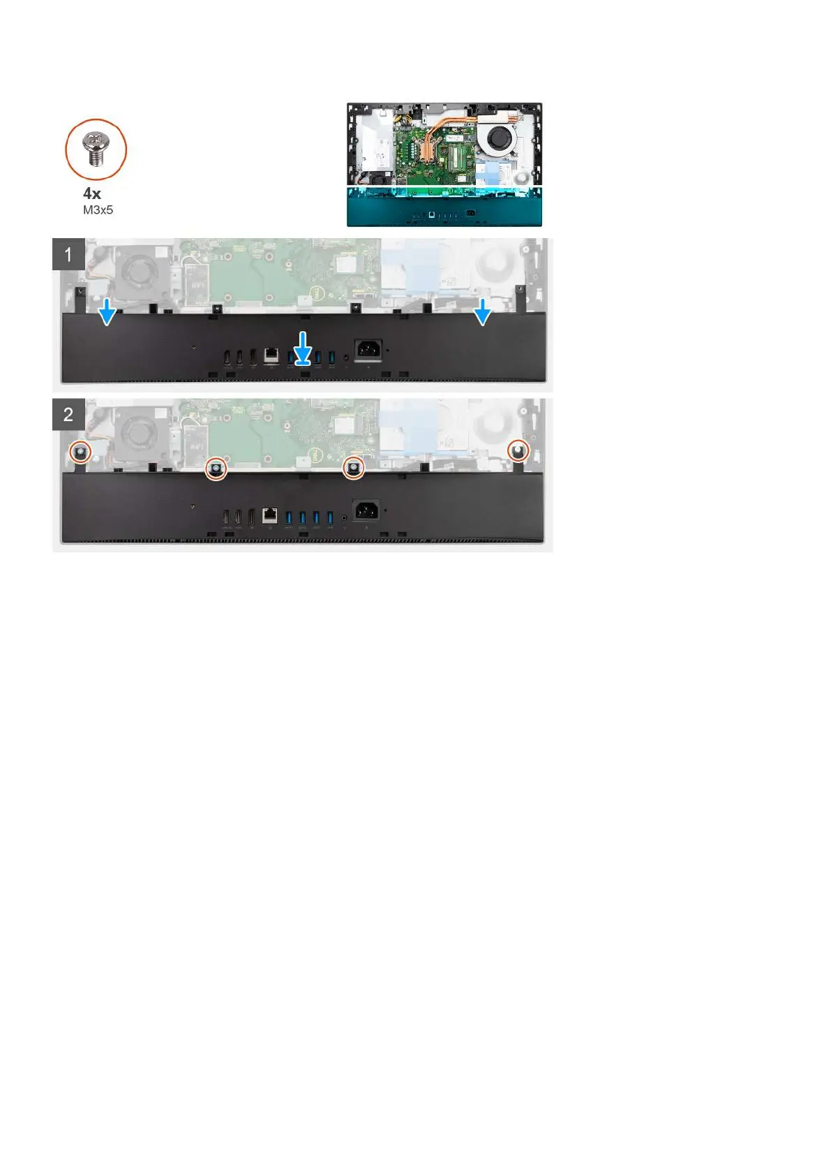 2. Replace the four screws (M3x5) to secure the bottom cover to the display-assembly base.