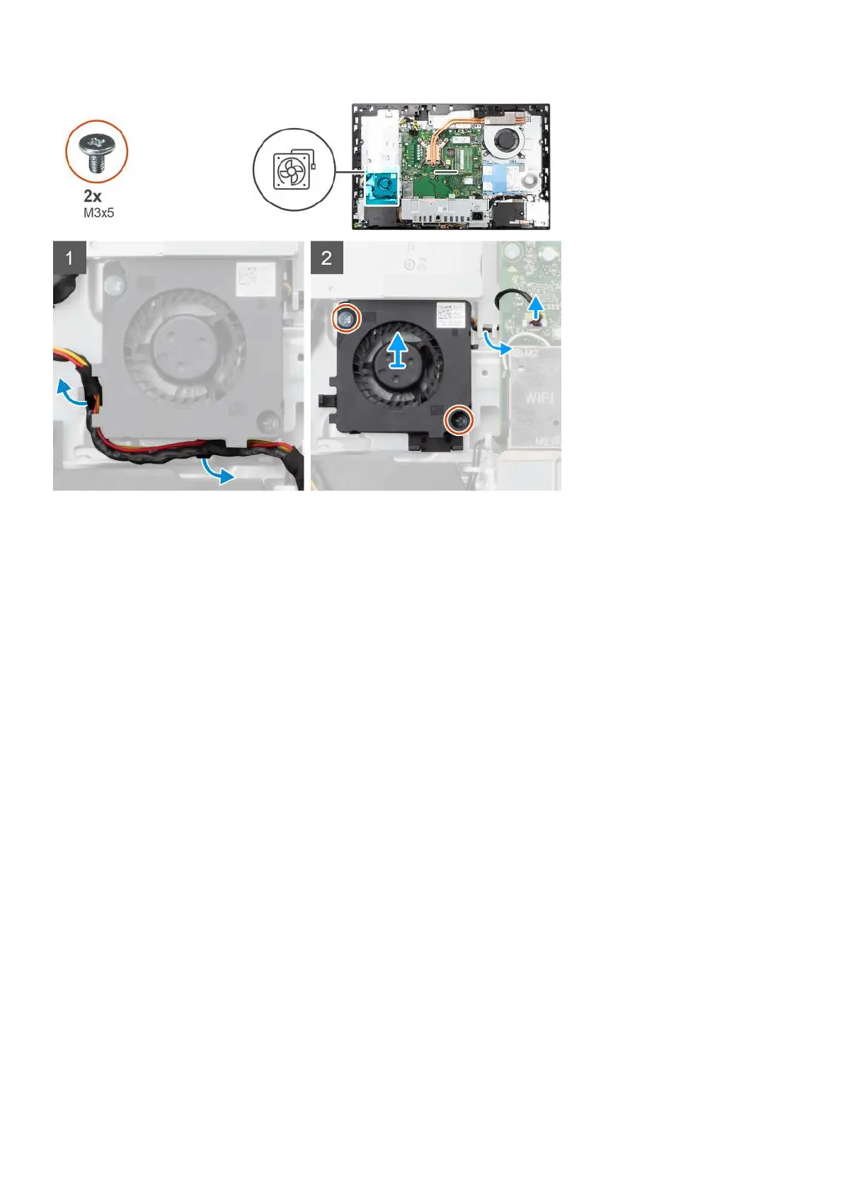 3. Remove the two screws (M3x5) that secure the PSU fan to the display-assembly base.