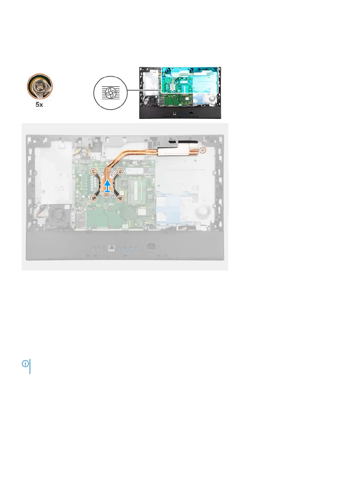 The following image indicates the location of the heat sink and provides a visual representation of the heat sink removal
