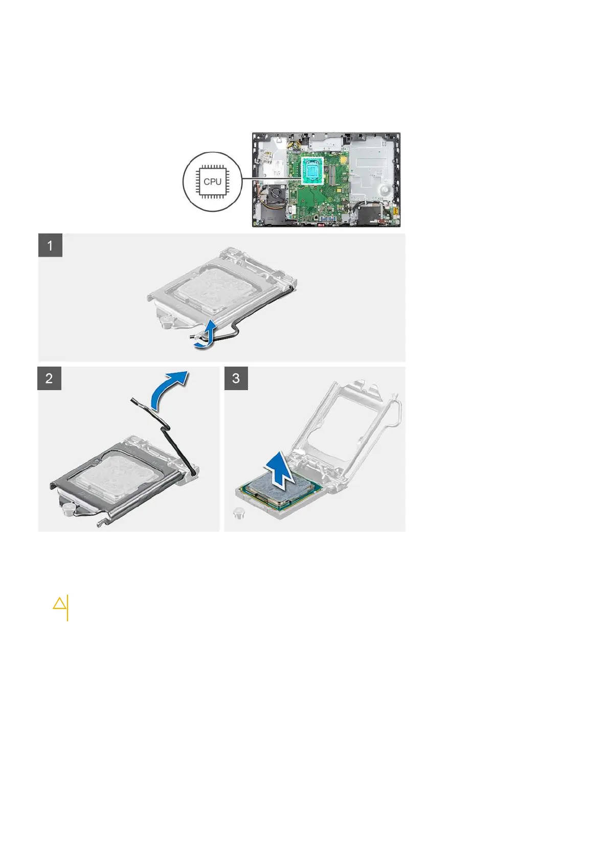 The following image indicates the location of the processor and provides a visual representation of the removal procedure.