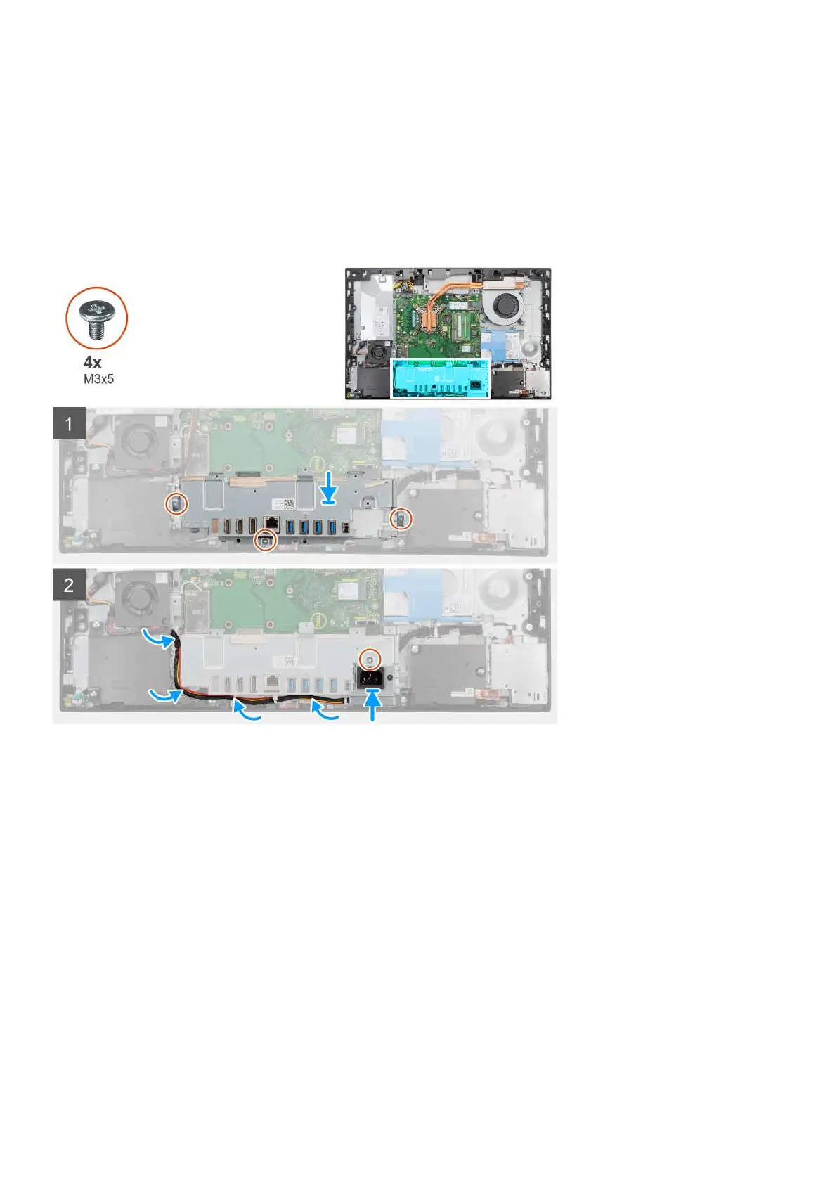 2. Replace the three screws (M3x5) to secure the rear-I/O bracket to the display-assembly base.