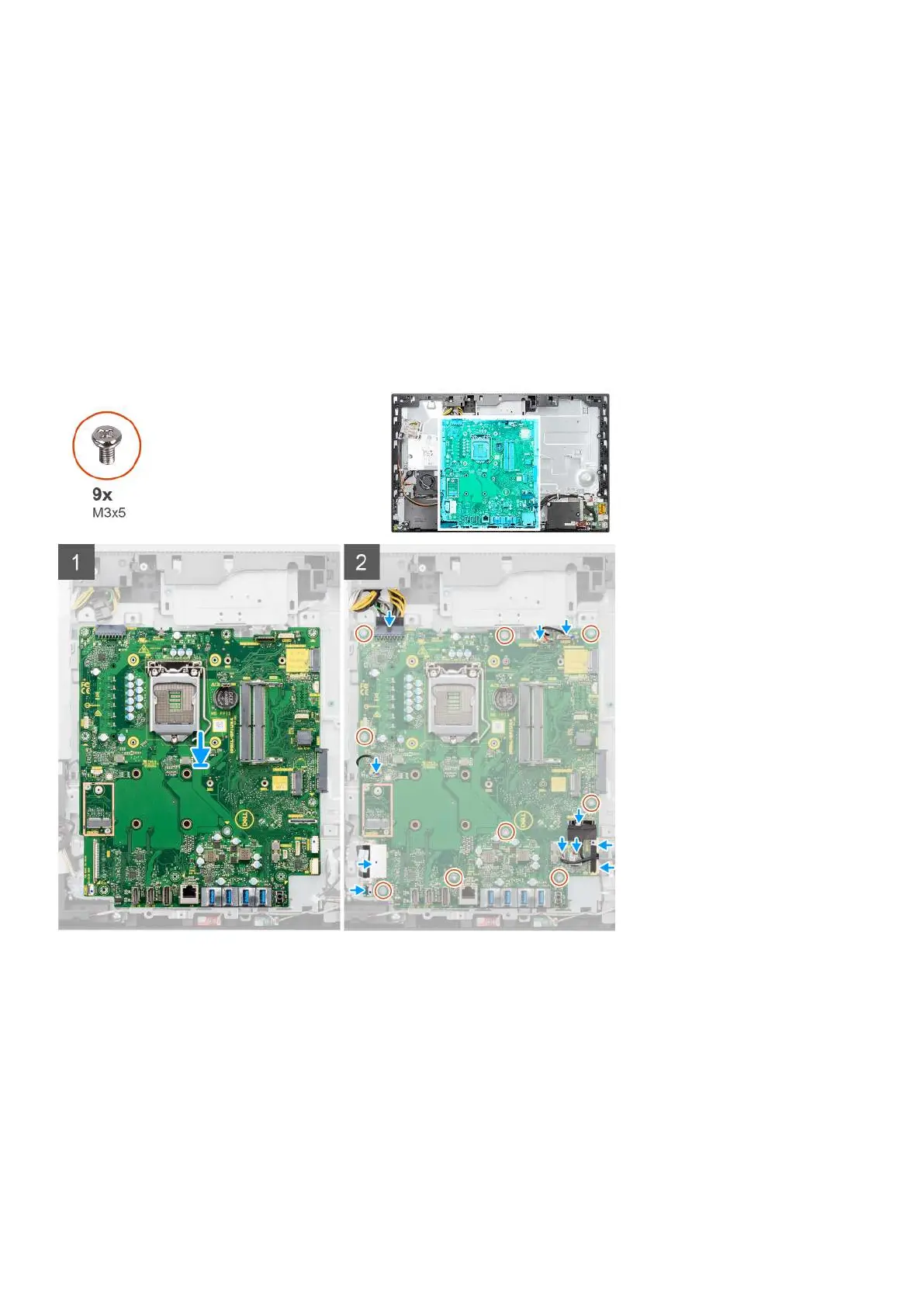 2. Replace the nine screws (M3x5) to secure the system board to the display-assembly base.