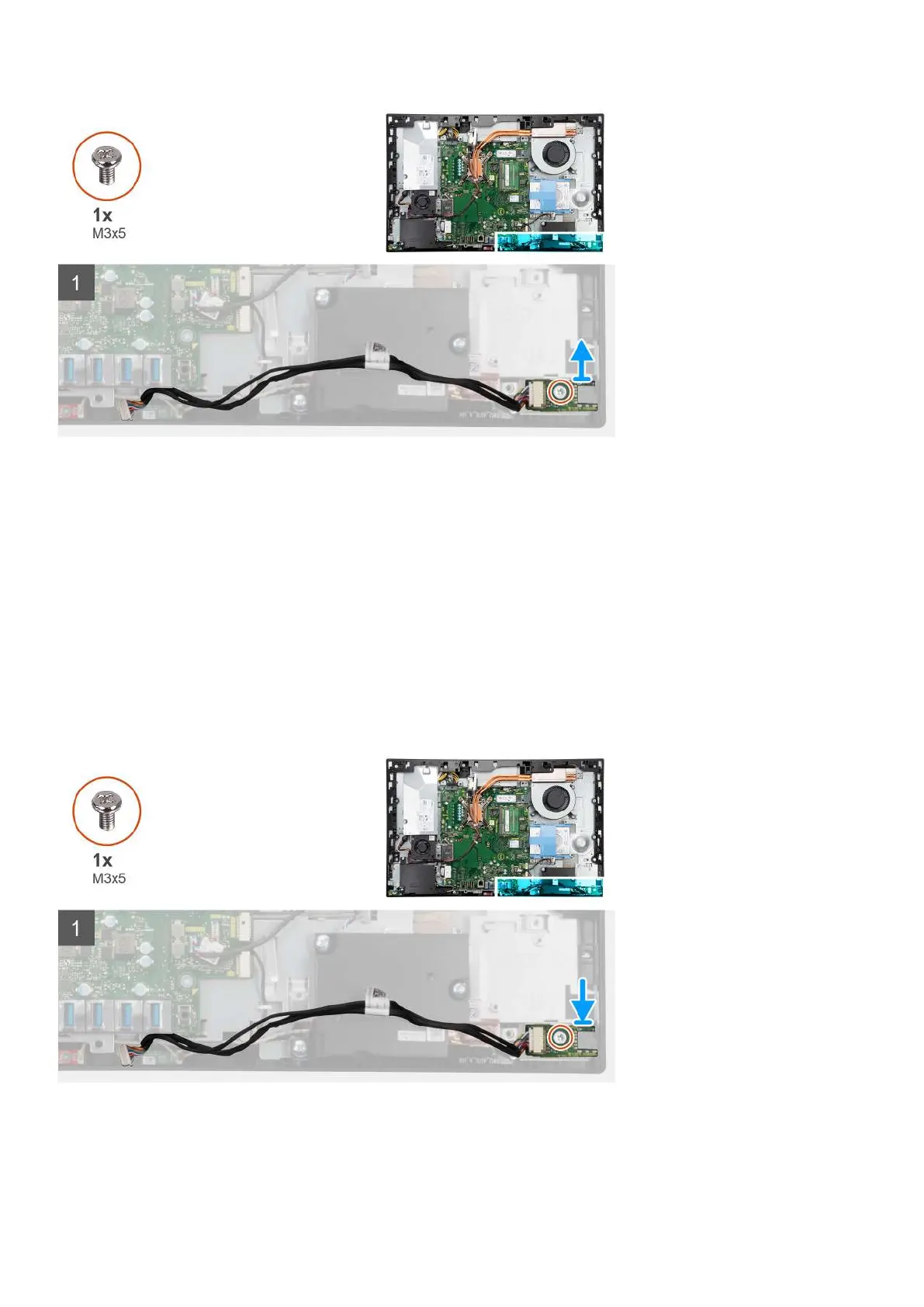 2. Replace the screw (M3x5) to secure the audio board to the display-assembly base.