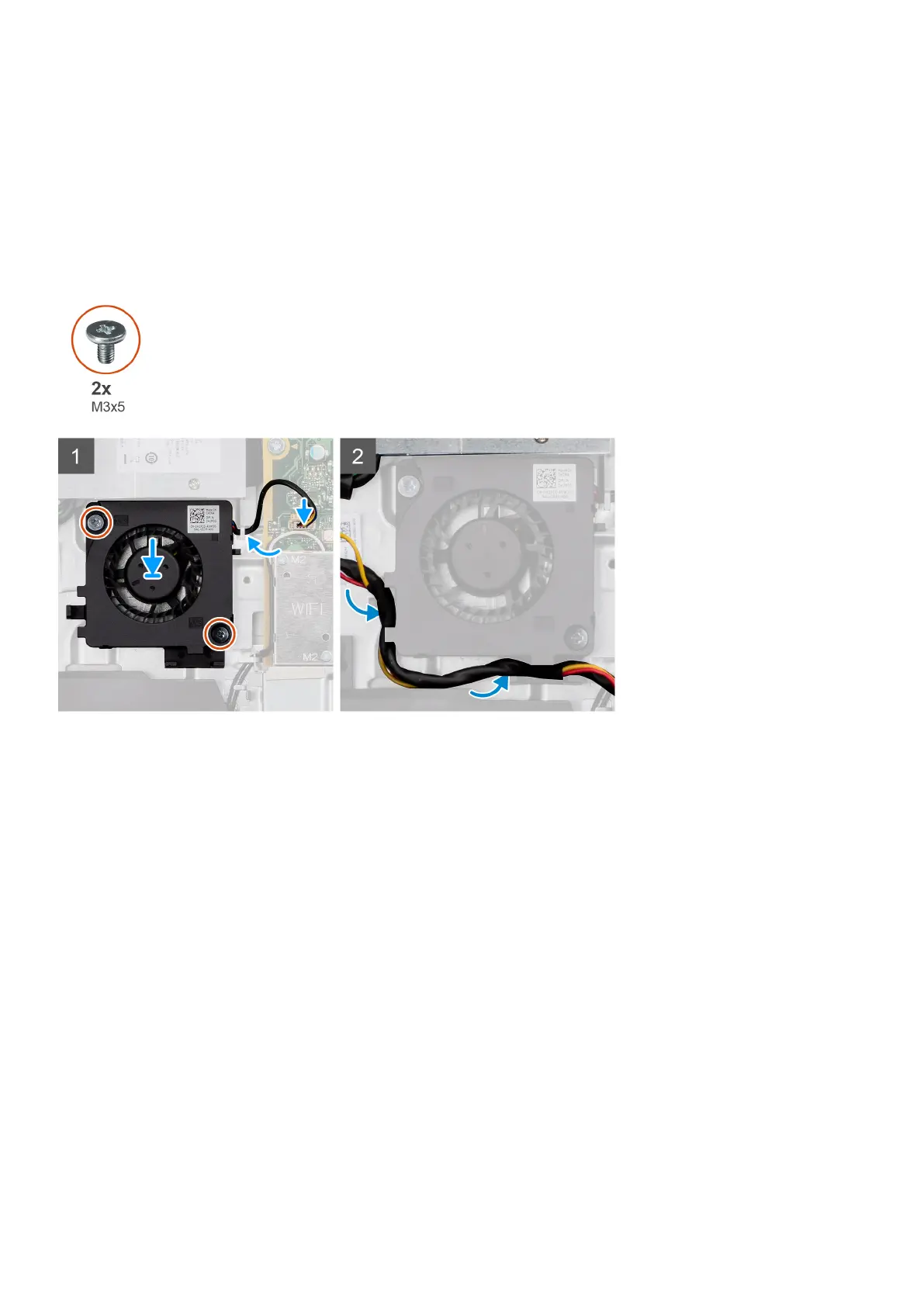 2. Replace the two screws (M3x5) to secure the PSU fan to the display-assembly base.