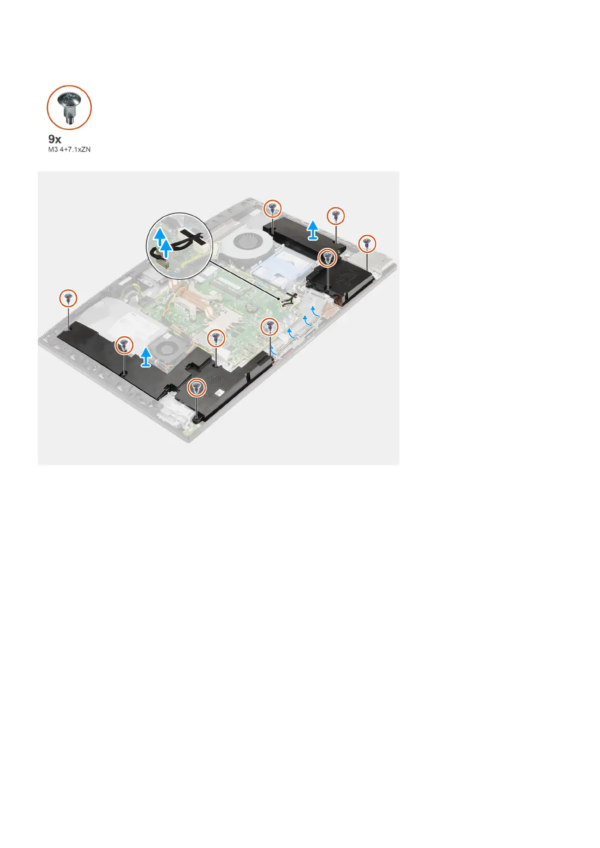 2. Remove the nine screws (M3 4+7.1xZN) that secure the speakers to the display-assembly base.