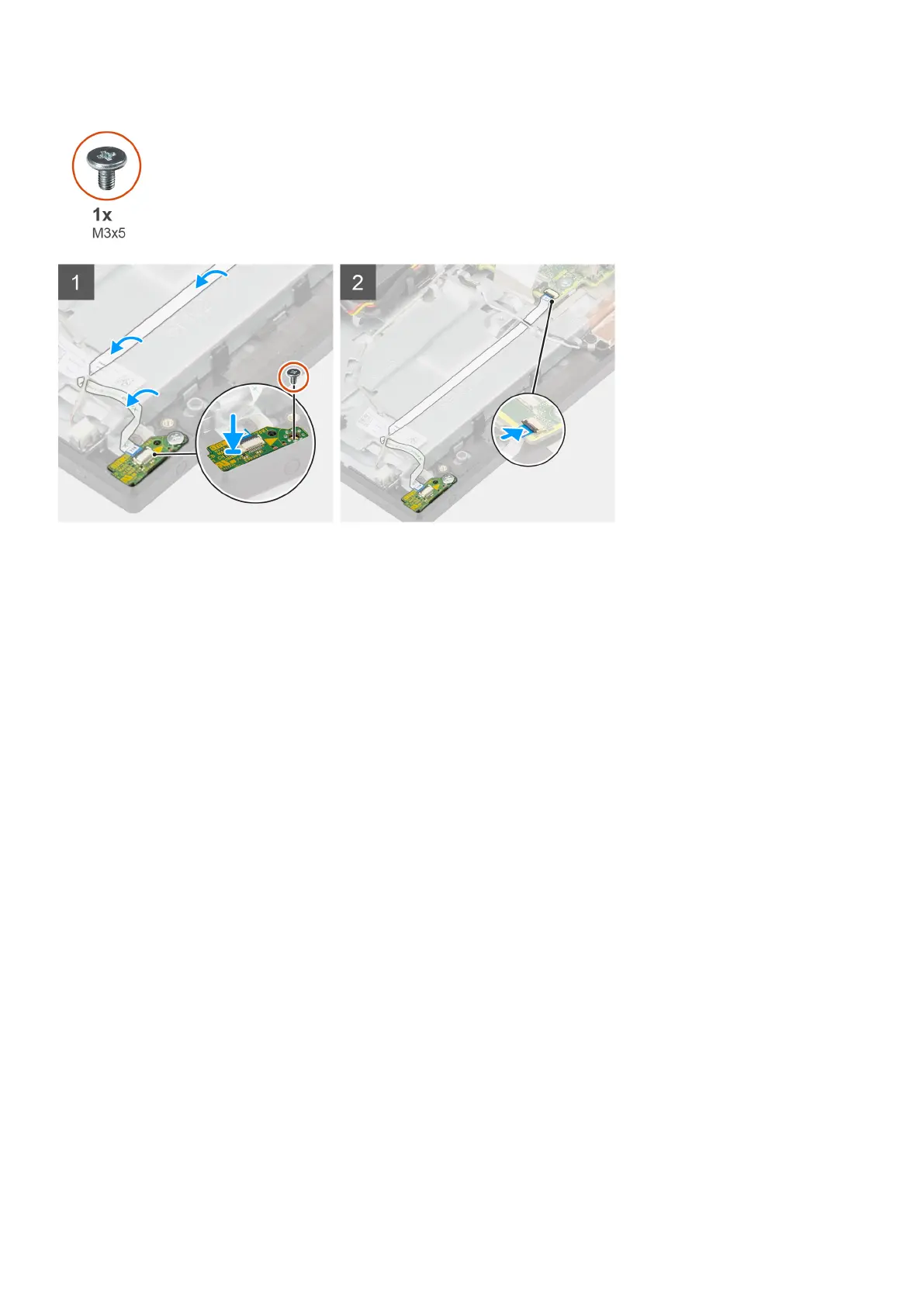 2. Replace the screw (M3x5) to secure the power-button board to the middle frame.