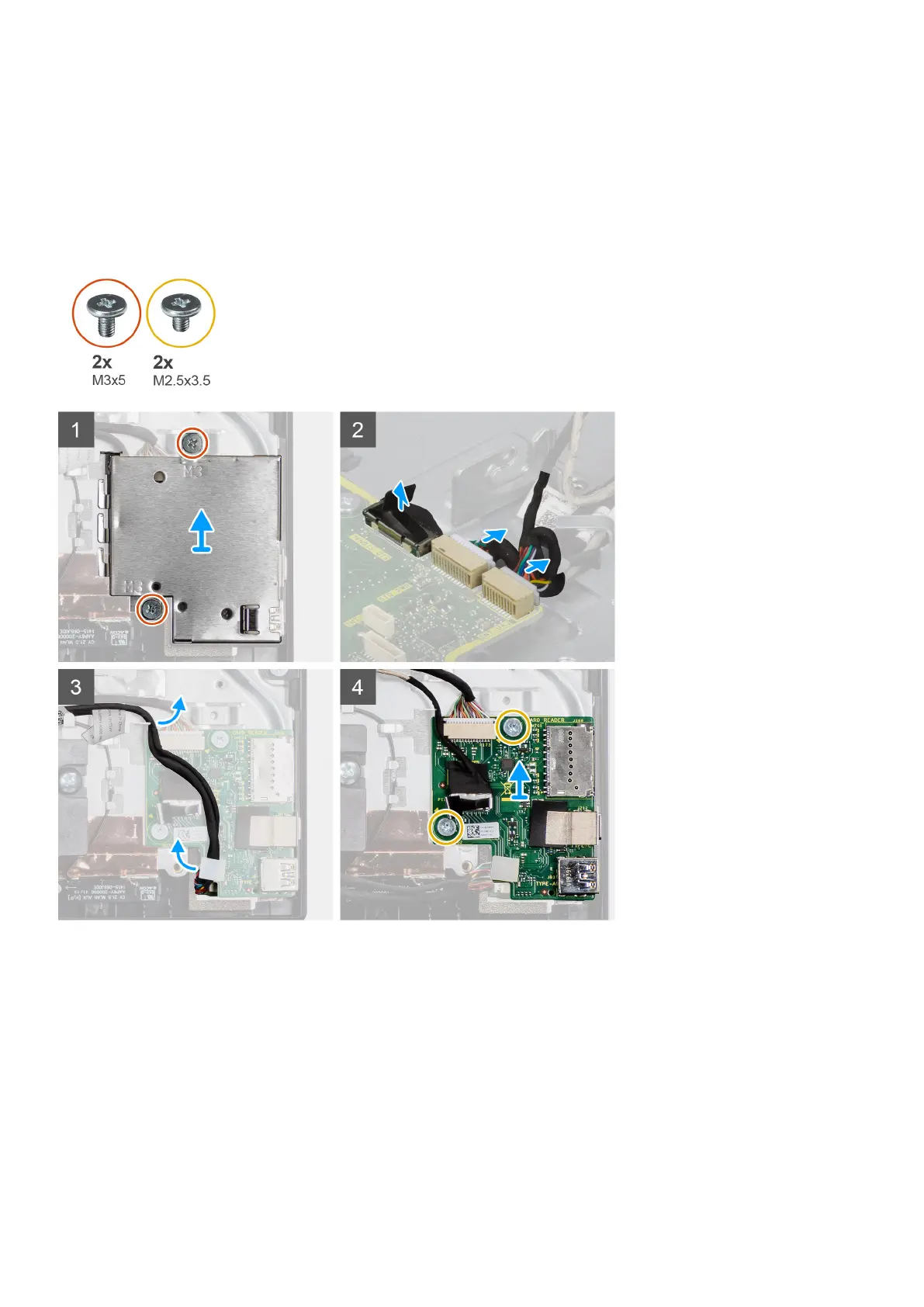 5. Remove the two screws (M2.5x3.5) that secure the side-I/O board to the display-assembly base.