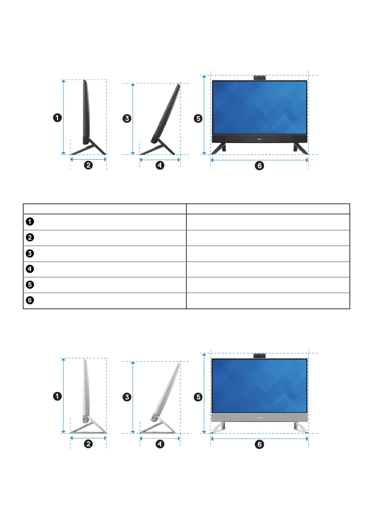 The following table provides the dimensions of the computer with Isosceles stand installed.