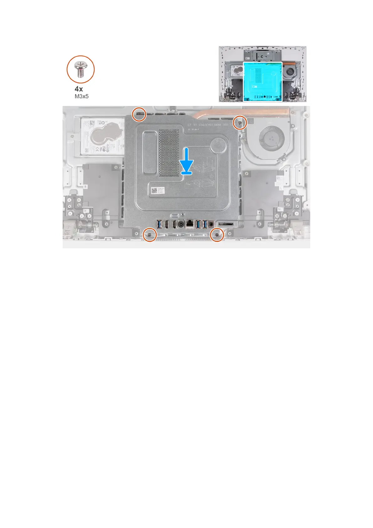 2. Replace the four screws (M3x5) that secure the system-board shield to the display-assembly base.