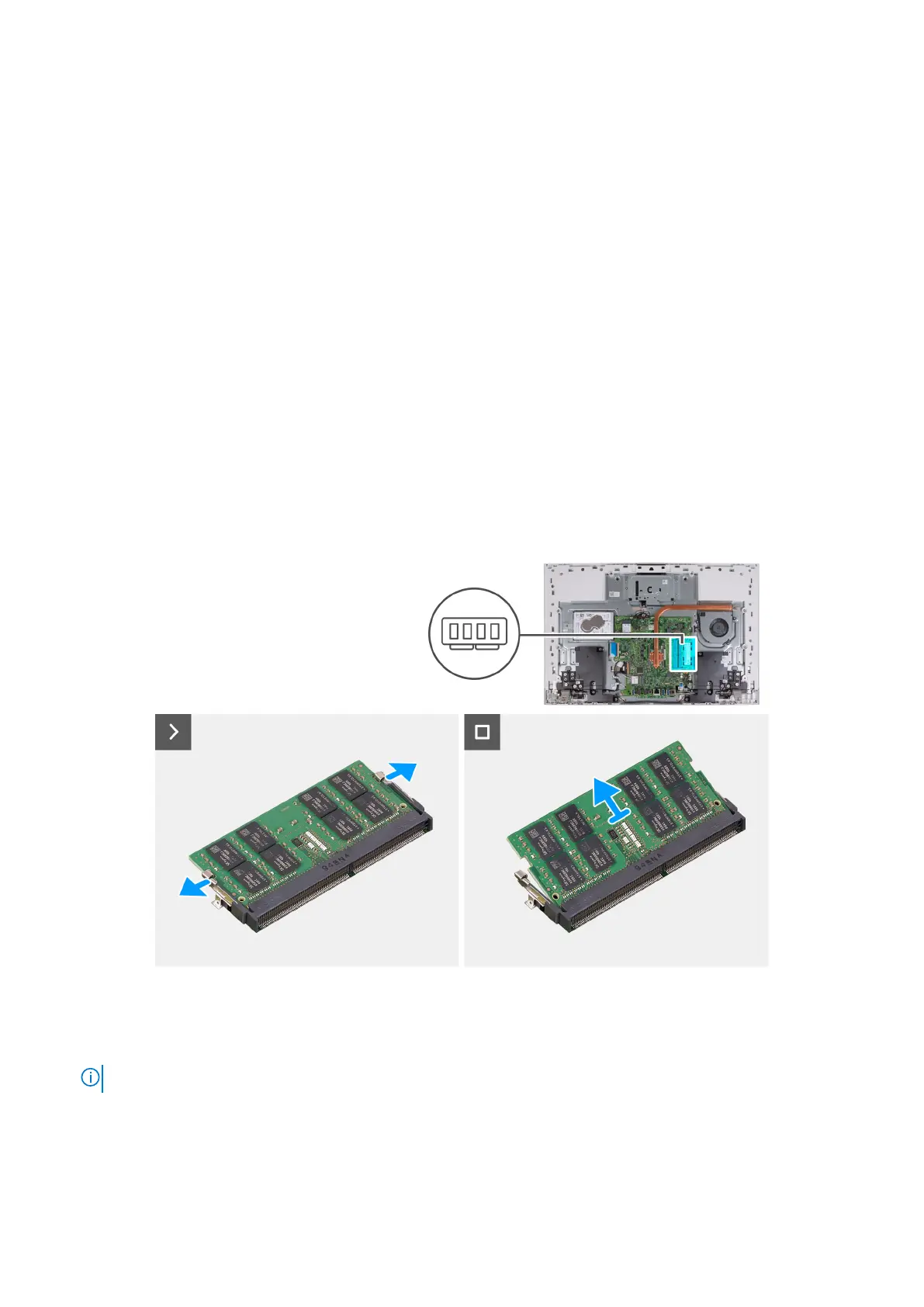 The following image indicates the location of the memory module and provides a visual representation of the removal procedure.