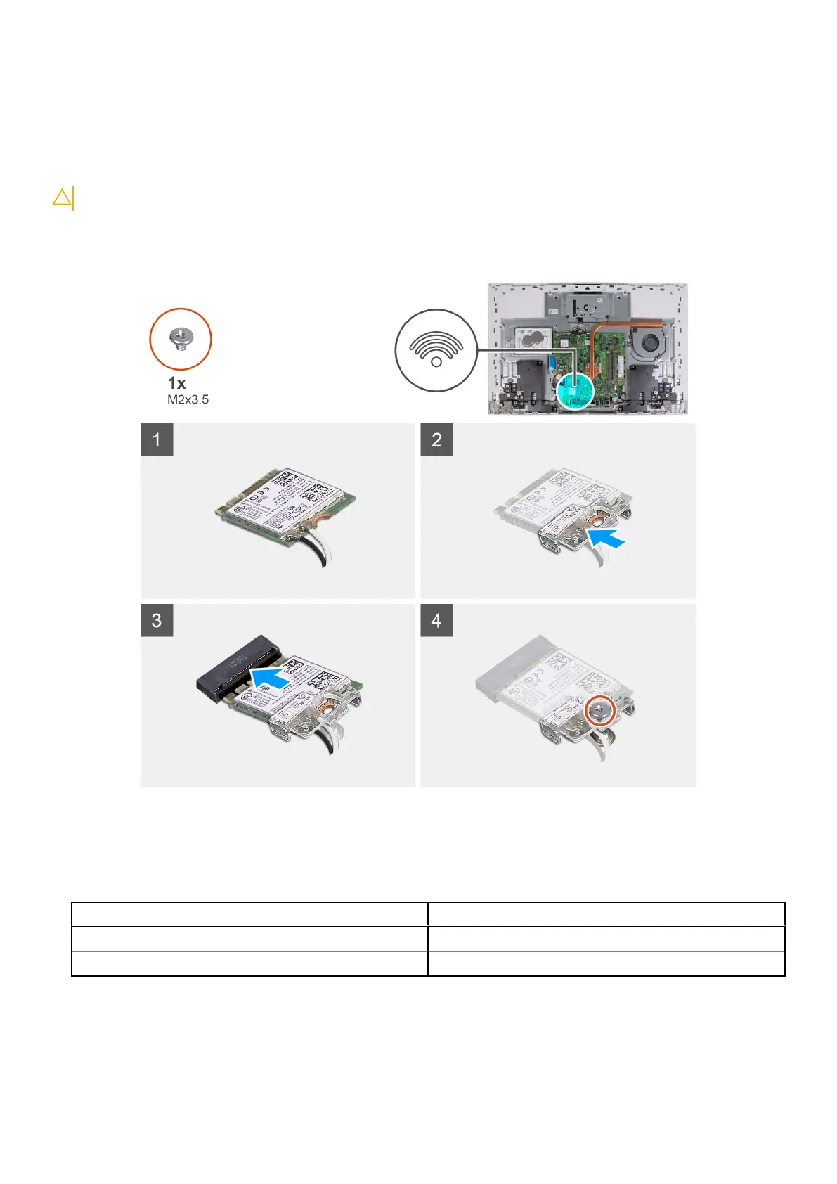 The following image indicates the location of the wireless card and provides a visual representation of the installation procedure.