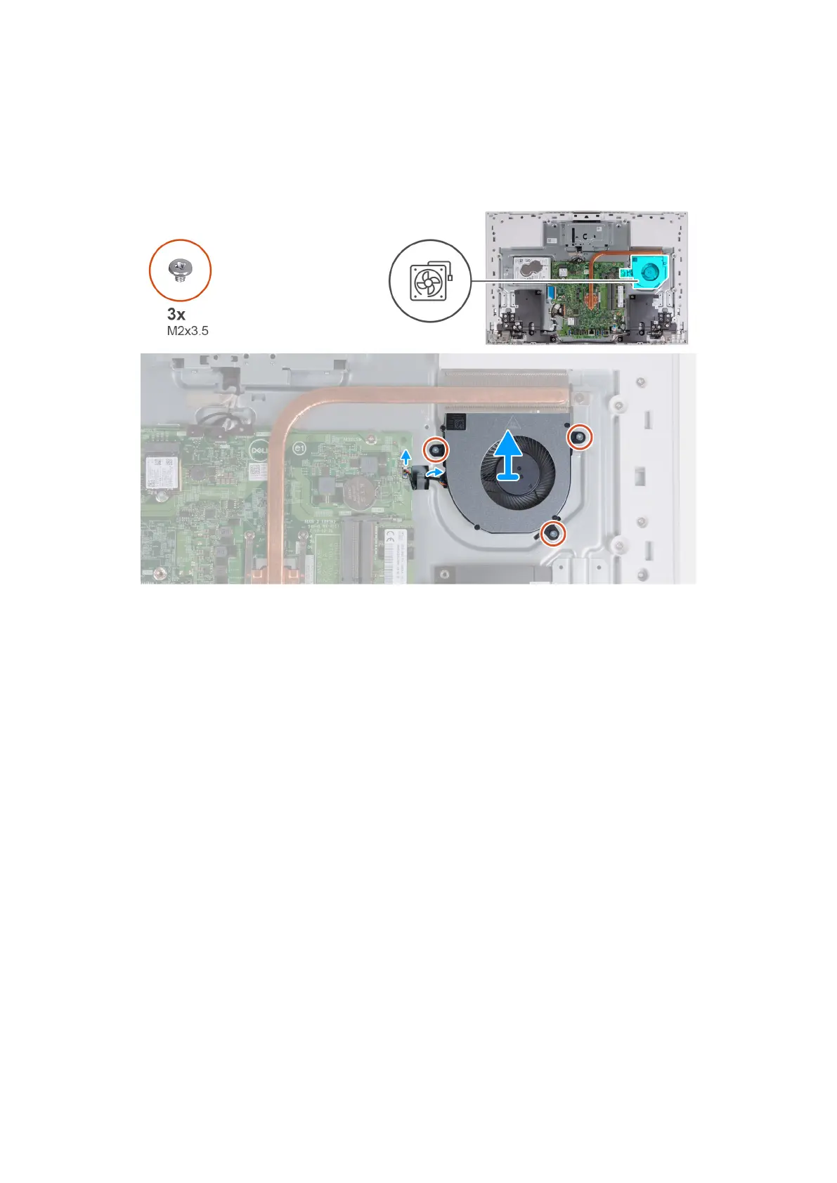 3. Remove the three screws (M2x3.5) that secure the fan to the display-assembly base.