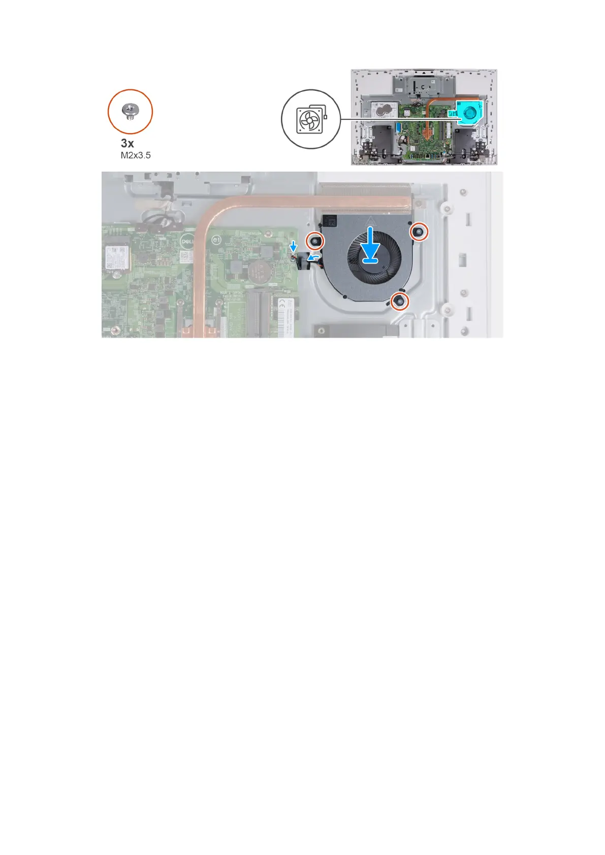 2. Replace the three screws (M2x3.5) that secure the fan to the display-assembly base.
