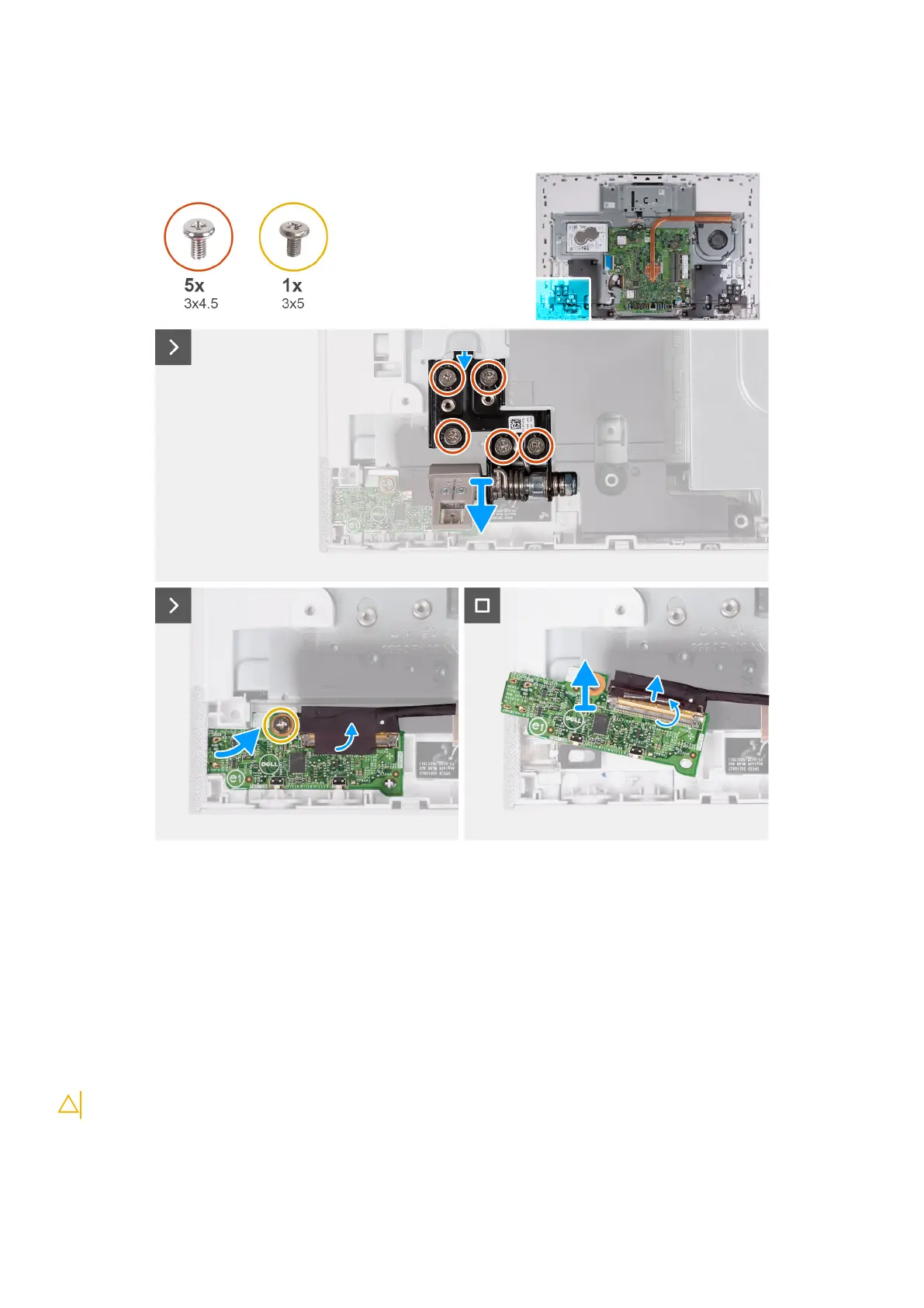 2. Remove the screw (M3x5) that secures the power-button board to the display-assembly base.