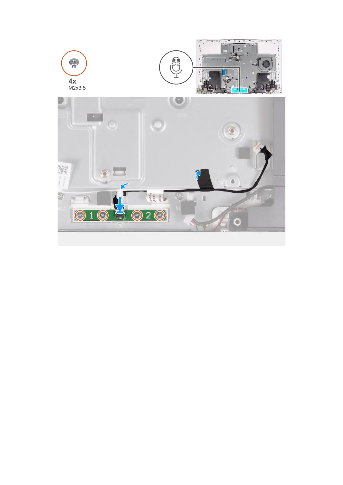 2. Replace the four screws (M2X3.5) that secure the microphone module to the display-assembly base.