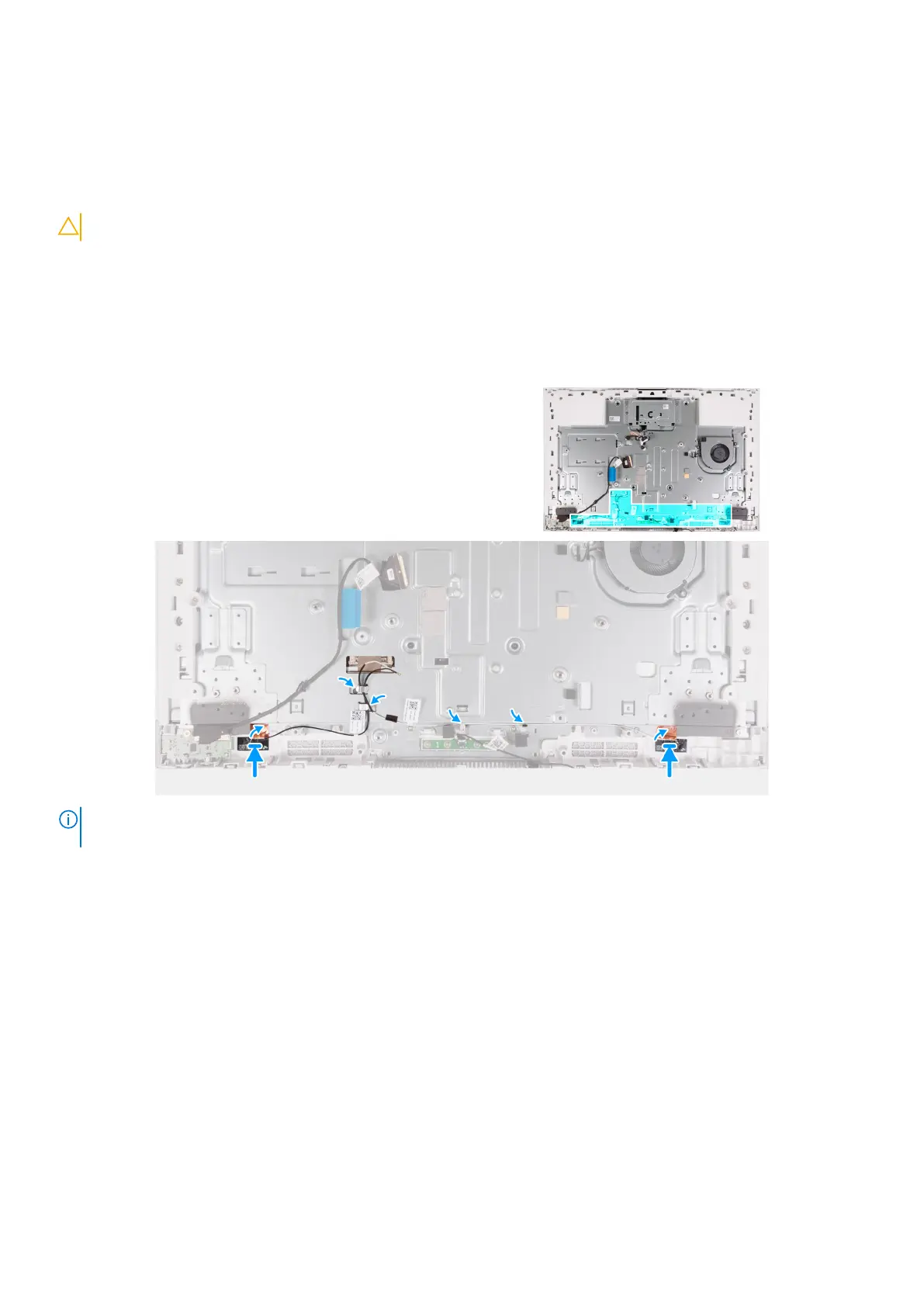 3. Route the antenna cables through the routing guides on the display-assembly base.