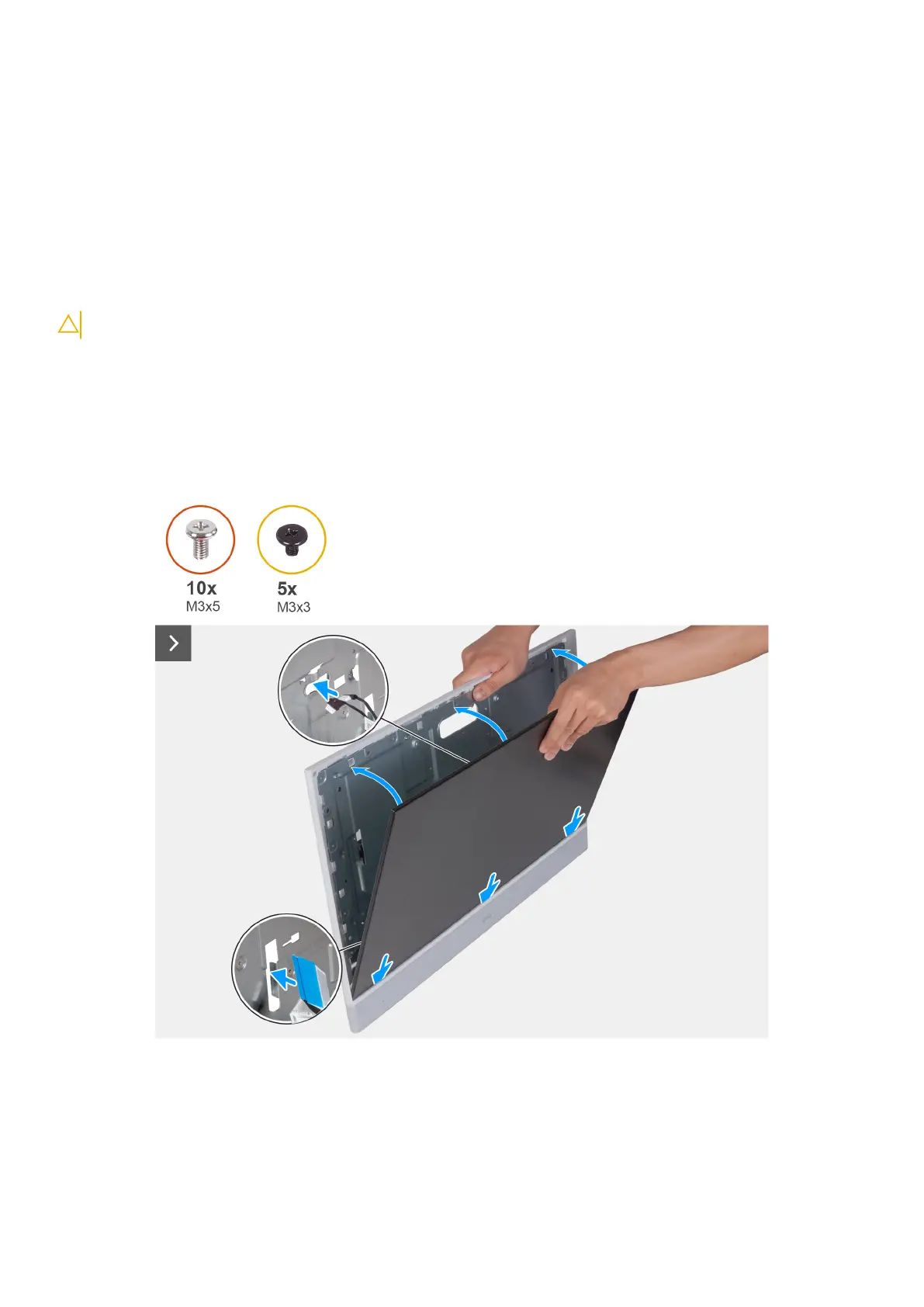 2. Remove the five screws (M3x3) that secure the display panel to the display-assembly base.