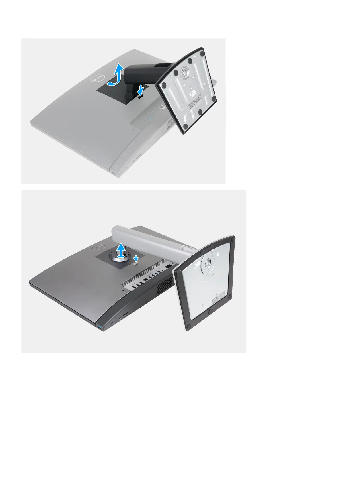 2. Press and hold down on the tab that secures the stand to the display-assembly base.