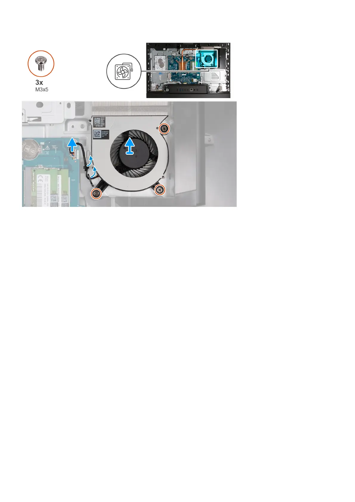 1. Remove three two screws (M3x5) that secure the fan to the display-assembly base.