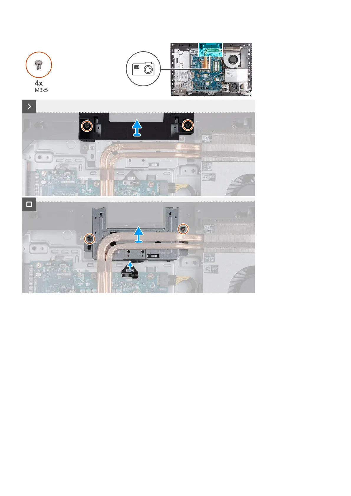 1. Remove the two screws (M3x5) that secure the camera-assembly bracket to the display-assembly base.