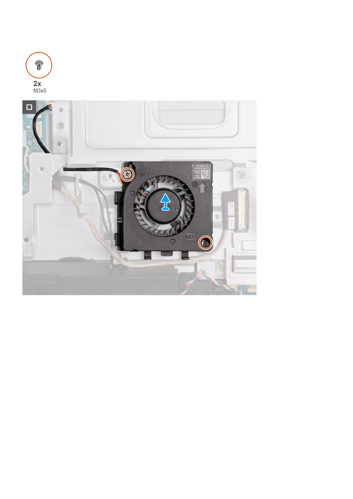 5. Remove the two screws (M3x5) that secure the power-supply fan to the display-assembly base.