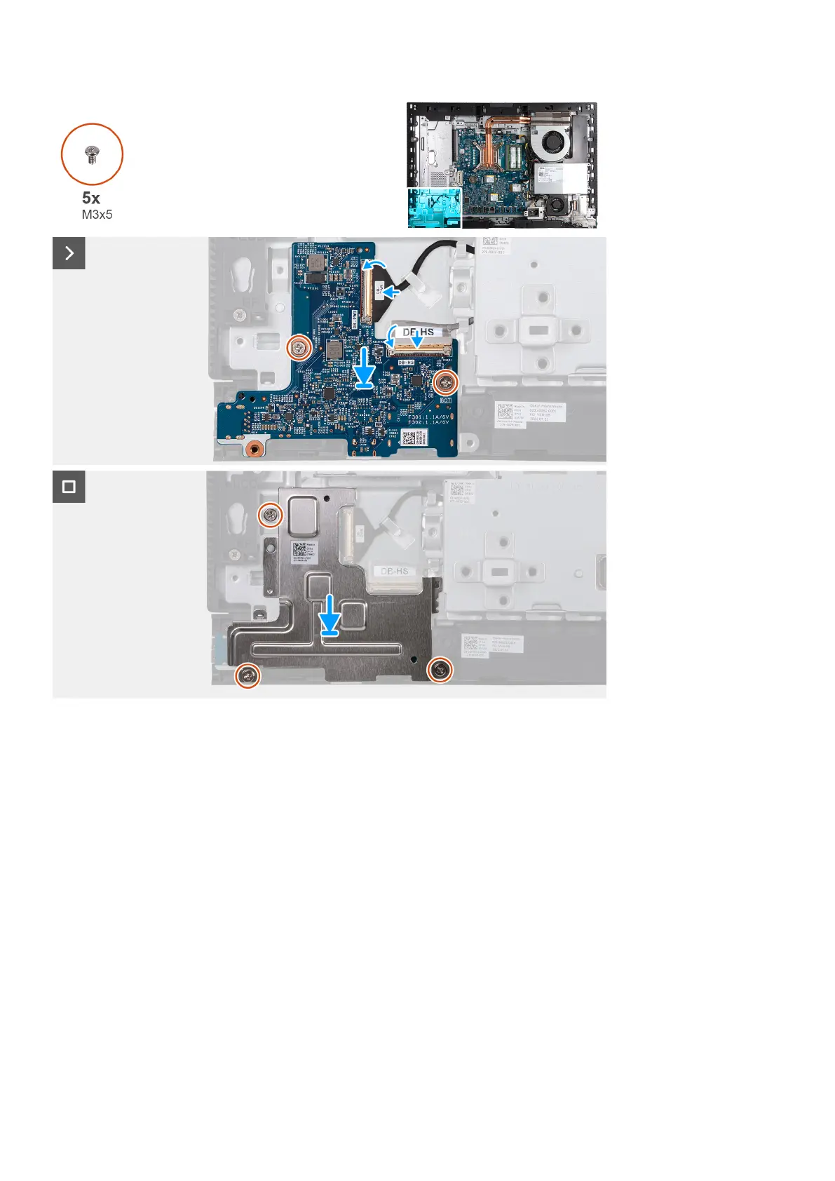 3. Replace the two screws (M3x5) that secure the power-button and I/O board to the display-assembly base.