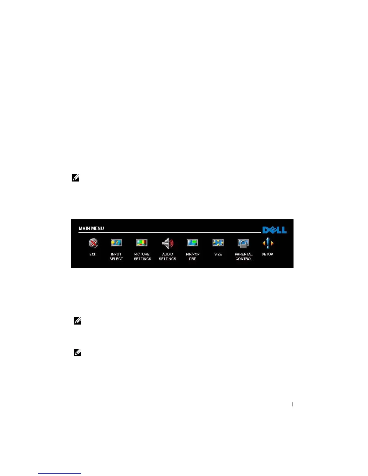 REMARQUE : Vous pouvez accéder au menu TV et y faire des sélections en utilisant les boutons de