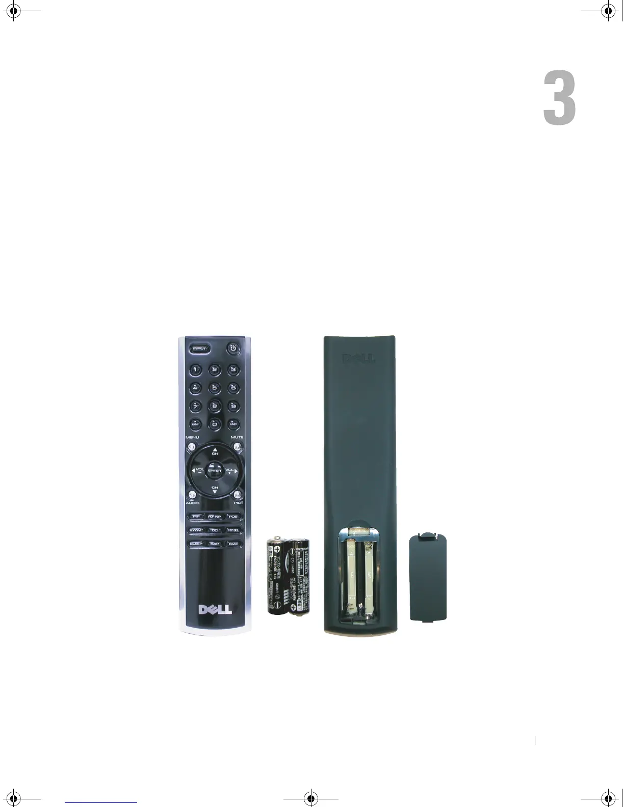 Before you can use your remote control, install two AAA batteries in the remote control as follows.