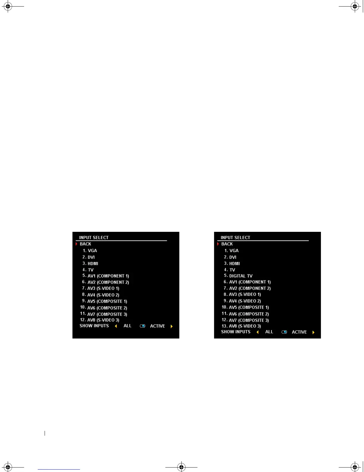 DVI — Select when you have connected your computer or a device such as a DVD player to the DVI