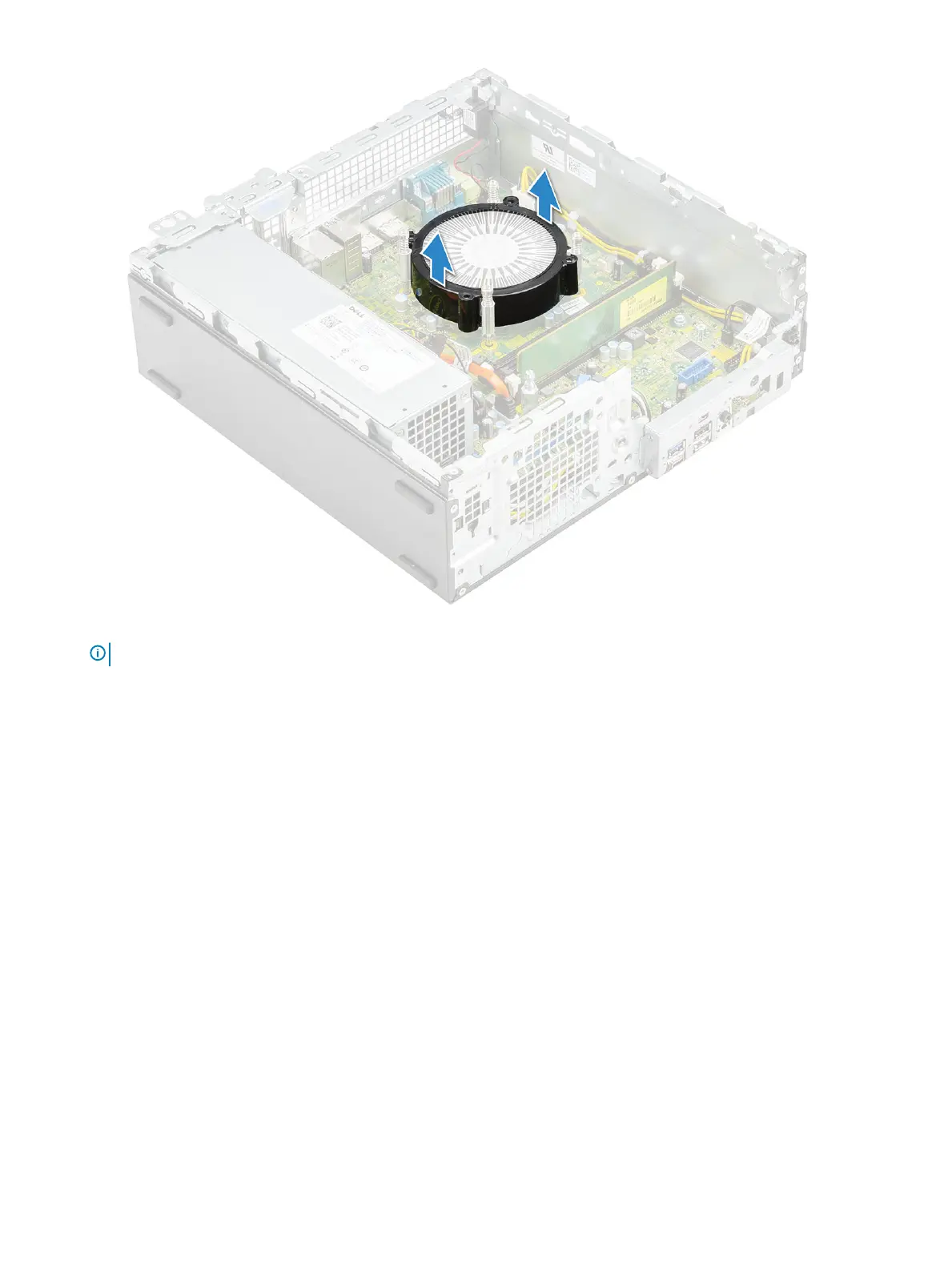 b Loosen the 4 captive screws that secure the heat sink [1] and lift it away from the system [2].