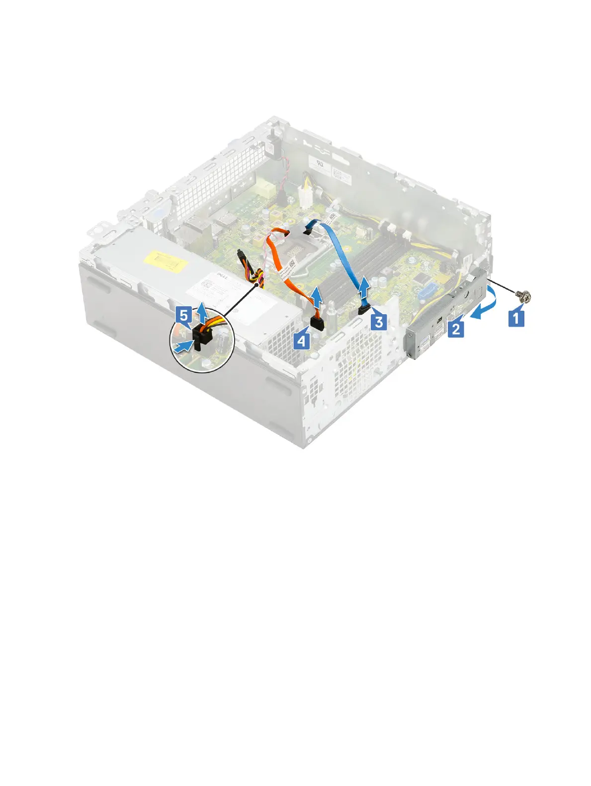 c Disconnect the hard drive data cable [3], optical drive data cable [4] and power cable [5] from the connectors on the system