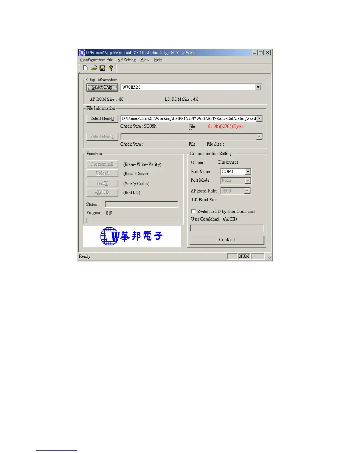 a. You will enter the window as follow after executing the ispwriter.exe file.