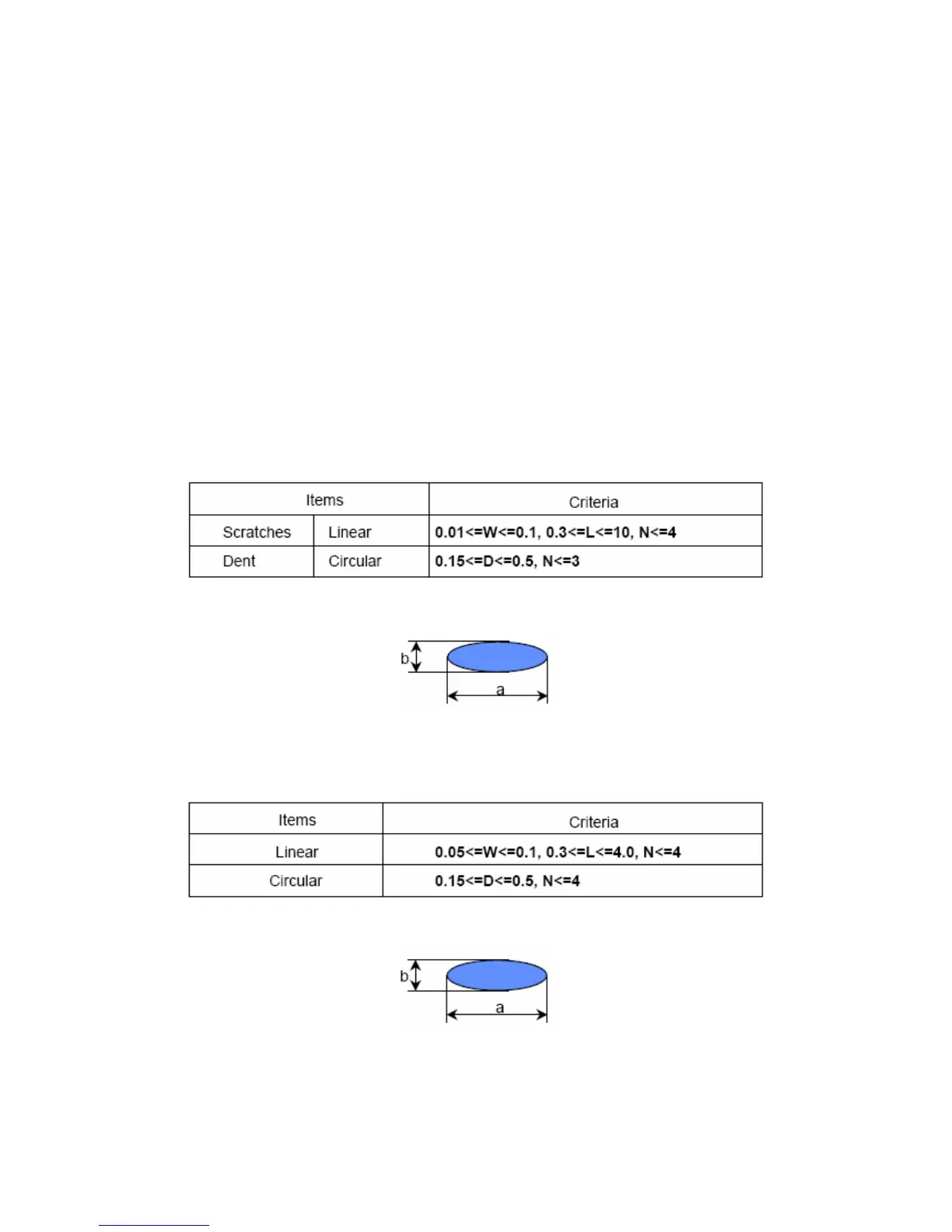 All kinds of line defects such as vertical, horizontal or cross are not allowed.
