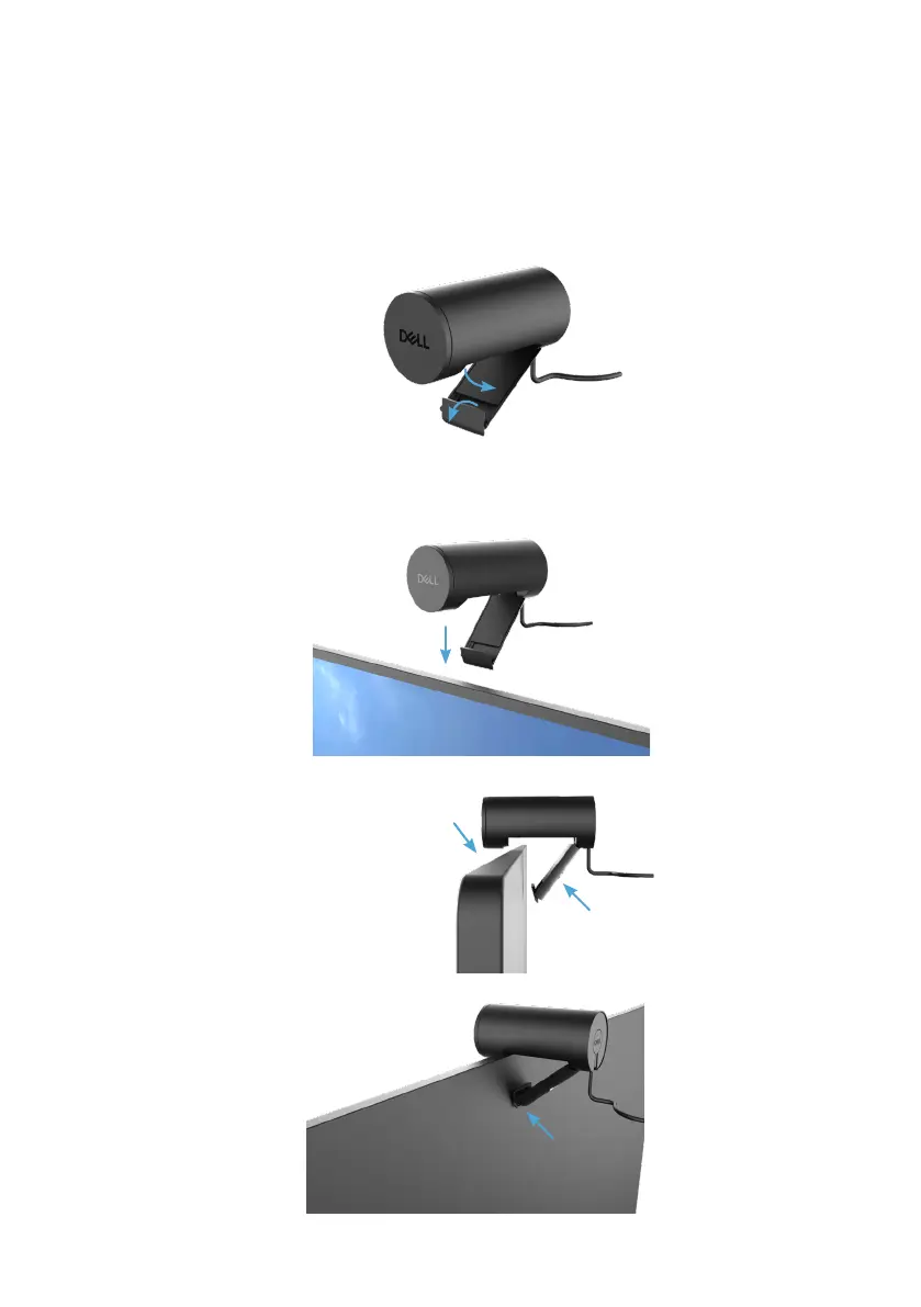2. Place the webcam on the monitor bezel and adjust the foot on the universal mounting clip