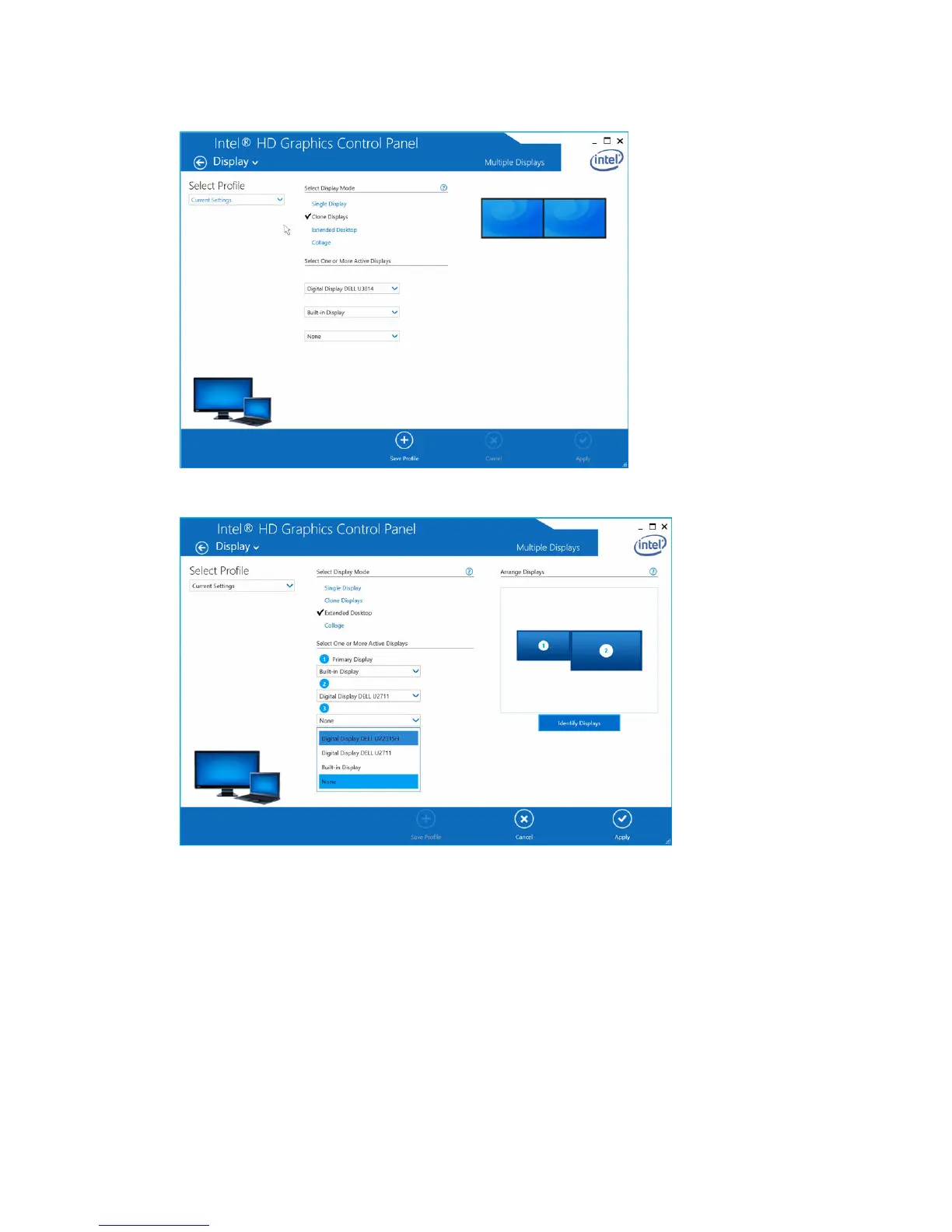 7. Select and arrange your displays to your preferred positions and then click Apply for the changes to