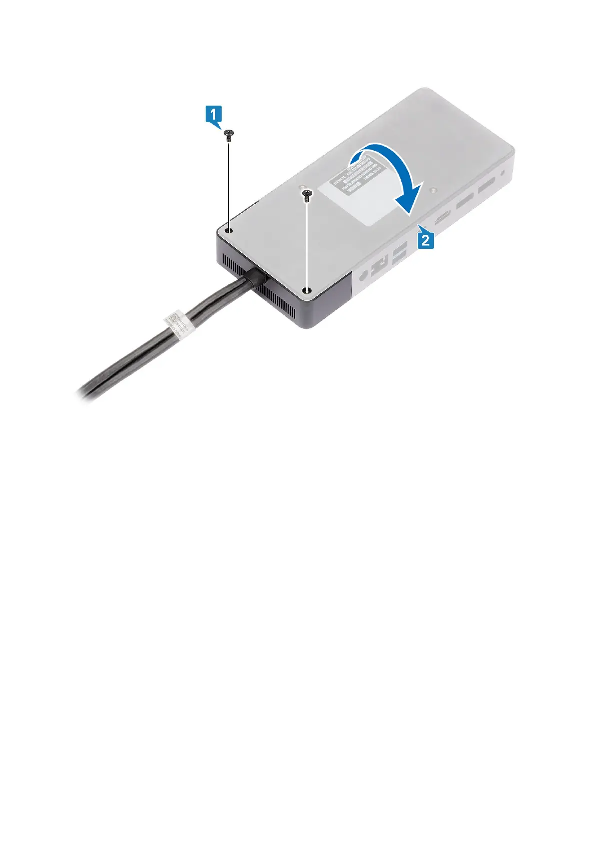 2. Remove the two M2.5 x 5 screws [1], and turn over the docking station [2].
