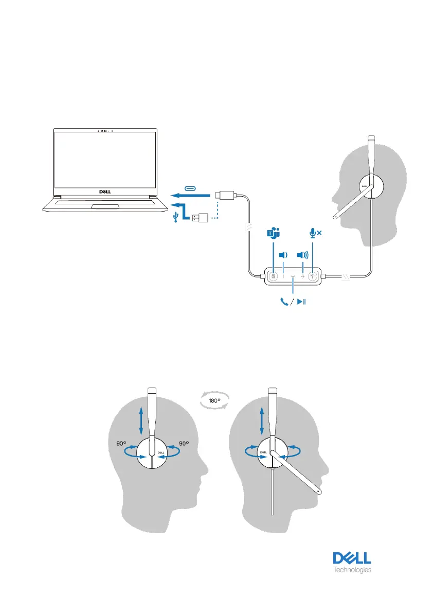 The headset can be worn on both the left and right sides. Lengthen or shorten the band until
