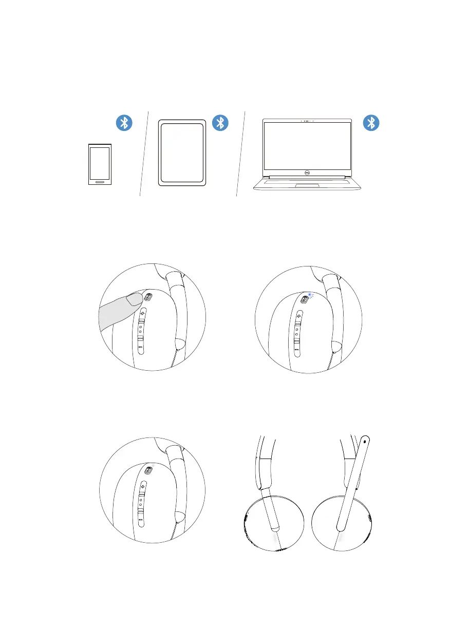 3. Connect the headset to smartphone, tablet, or laptop. The LED static blue