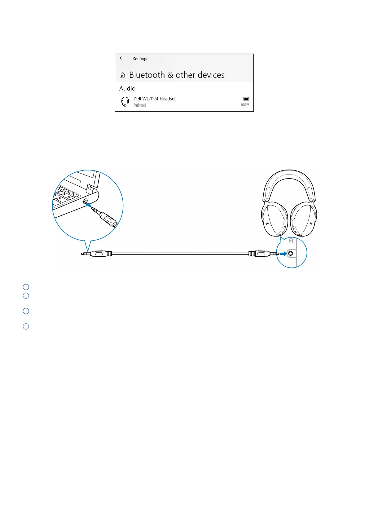 NOTE: When the 3.5 mm audio cable is disconnected, the headset searches for and connects to the previous wireless audio receiver.