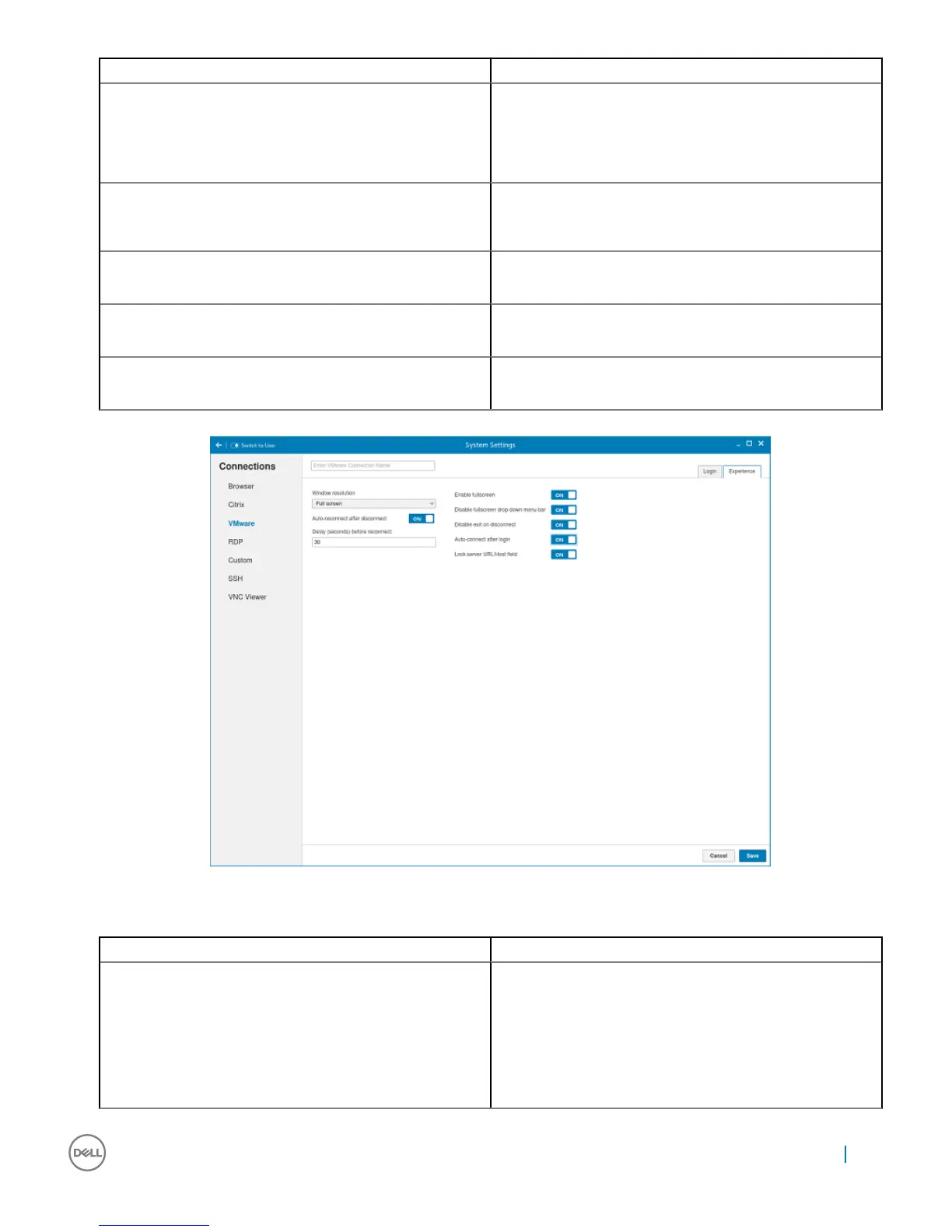 Figure 7. VMware experience settings