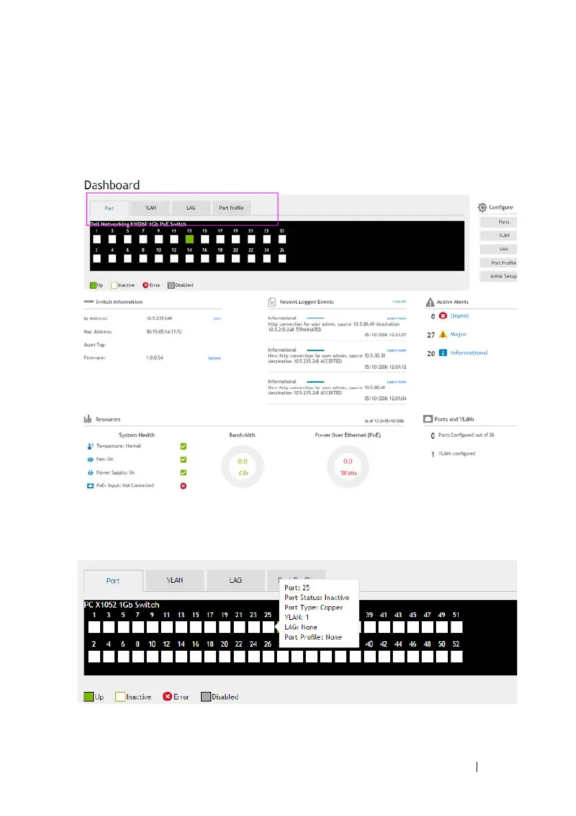 display of the Port Status, Port Profile, VLANs and LAGs configured on the