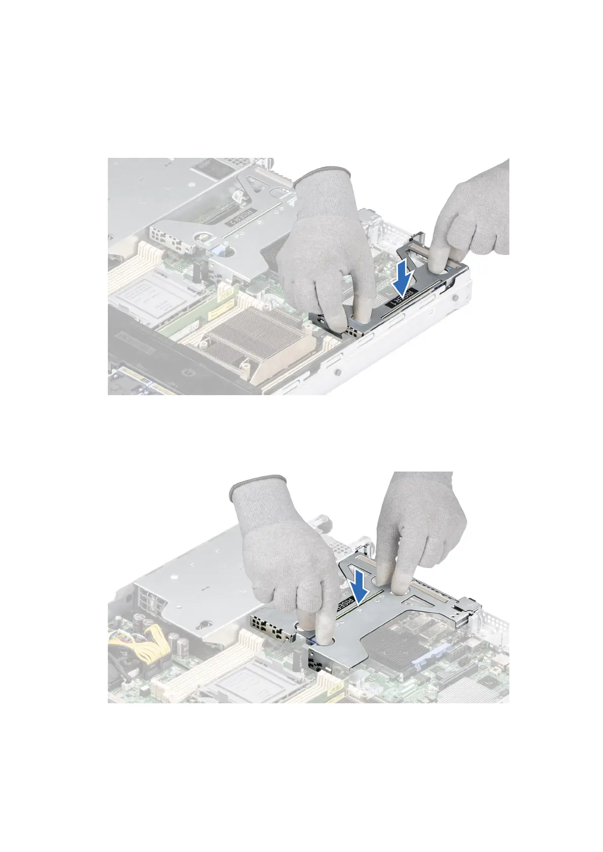 riser guide pin on the system board. Lower the expansion card riser into place until the expansion card riser connector is fully